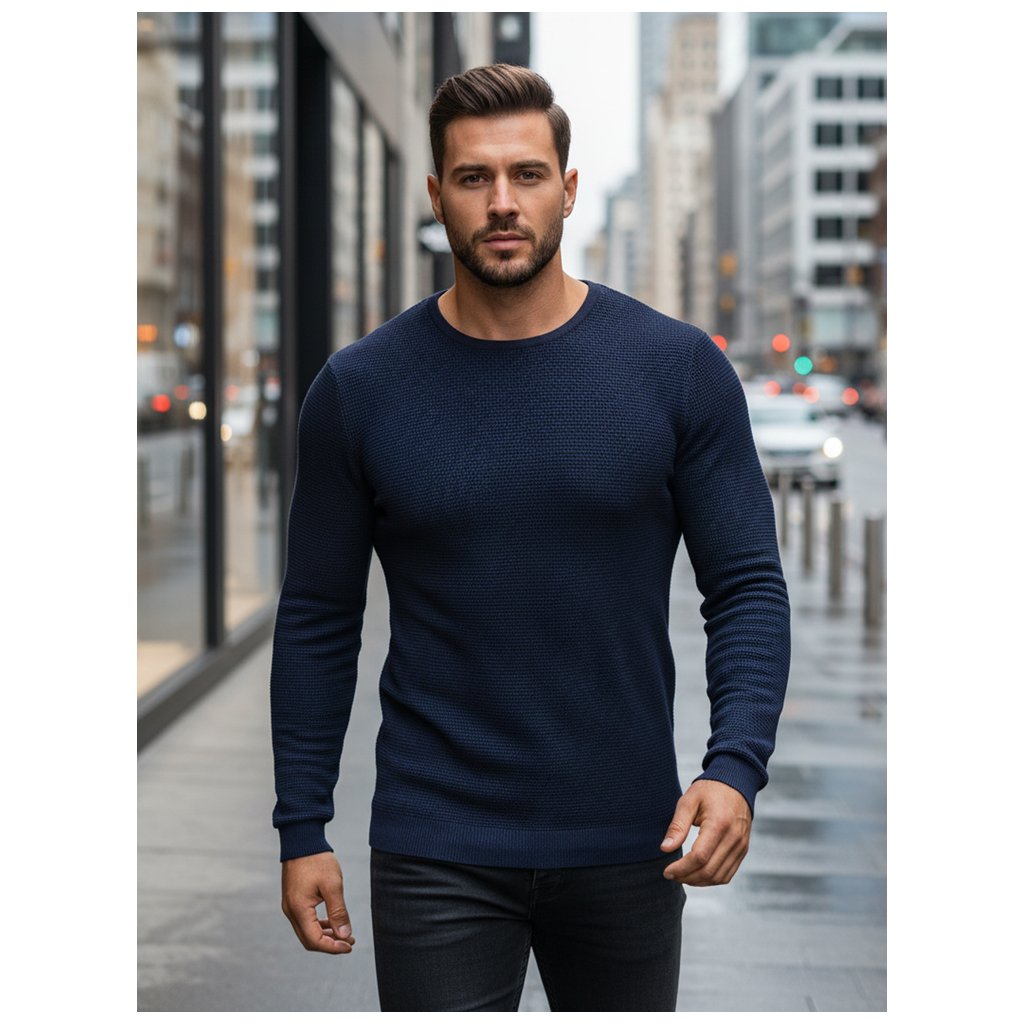 Elegantní pánský svetr s decentní texturou, ideální pro chladnější dny. Vyroben z vysoce kvalitního úpletu, zajišťuje pohodlí a odolnost. Přiléhavý střih lichotí postavě a všestranný design ho činí vhodným jak pro ležérní, tak i pro formálnější outfity.