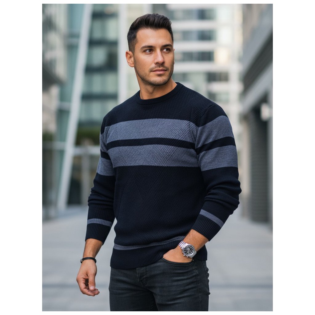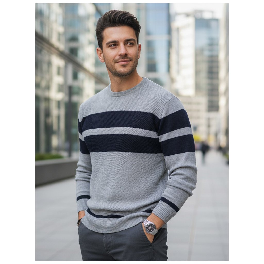 Pánský pruhovaný svetr WX2329 Černo-šedý