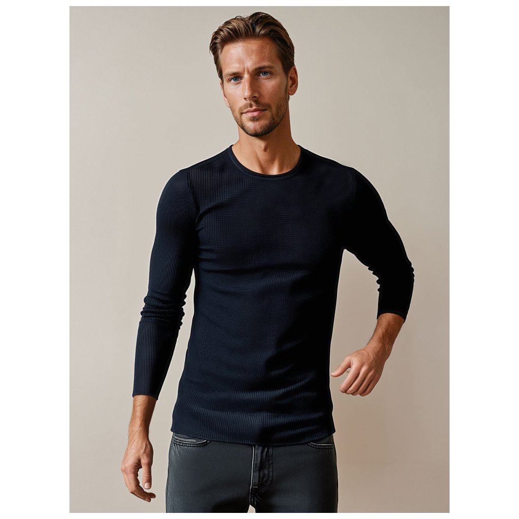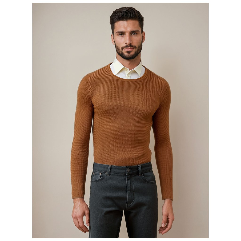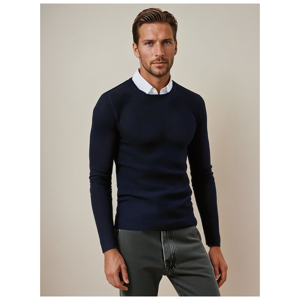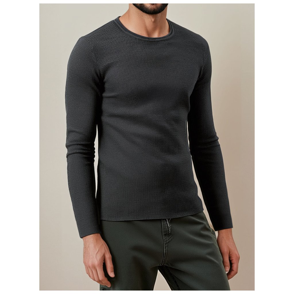Tento pánský svetr je vyroben z výrazně texturovaného úpletu, který mu dodává jedinečný styl. Klasický střih a pružný materiál zajišťují naprostou volnost pohybu a pohodlí. Je to perfektní volba pro chladnější dny, ideální jak pro ležérní, tak i elegantnější outfity.
