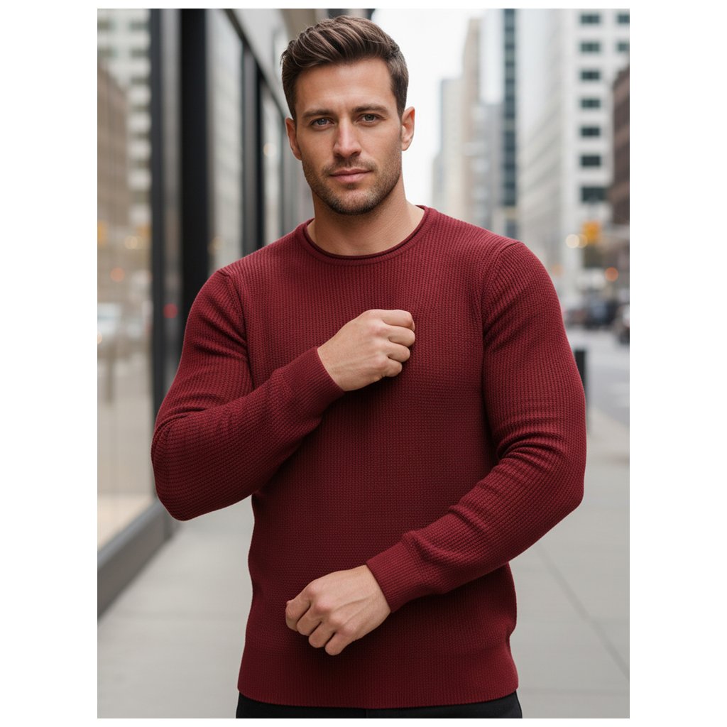 Tento pánský svetr je vyroben z výrazně texturovaného úpletu, který mu dodává jedinečný styl. Klasický střih a pružný materiál zajišťují naprostou volnost pohybu a pohodlí. Je to perfektní volba pro chladnější dny, ideální jak pro ležérní, tak i elegantnější outfity.