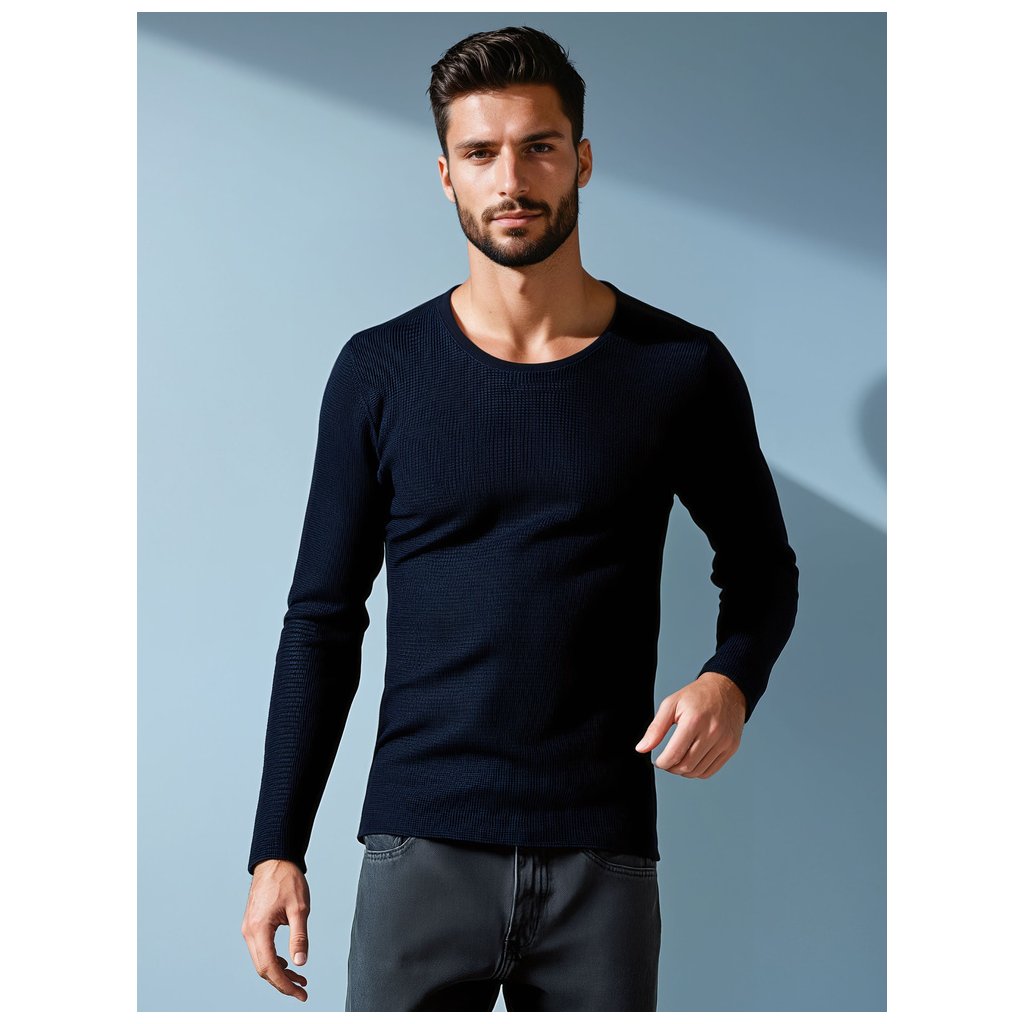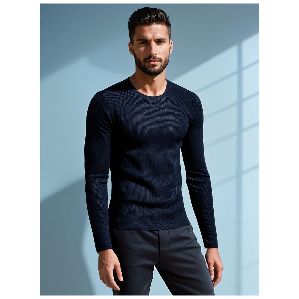 Elegantní pánský svetr s decentní texturou, ideální pro chladnější dny. Vyroben z vysoce kvalitního úpletu, zajišťuje pohodlí a odolnost. Přiléhavý střih lichotí postavě a všestranný design ho činí vhodným jak pro ležérní, tak i pro formálnější outfity.