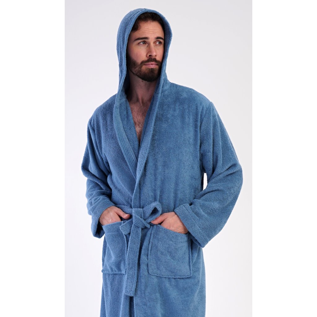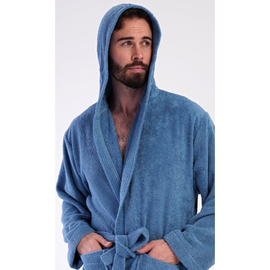 Pánský bavlněný froté župan s kapucí Albert. Pánský dlouhý župan s kapucí a páskem ke stažení je vhodný po koupeli i na povalování se doma na gauči. Froté župan má praktické kapsy, které oceníte při návštěvě wellness. Použitý bavlněný materiál je příjemný a poddajný na dotek.