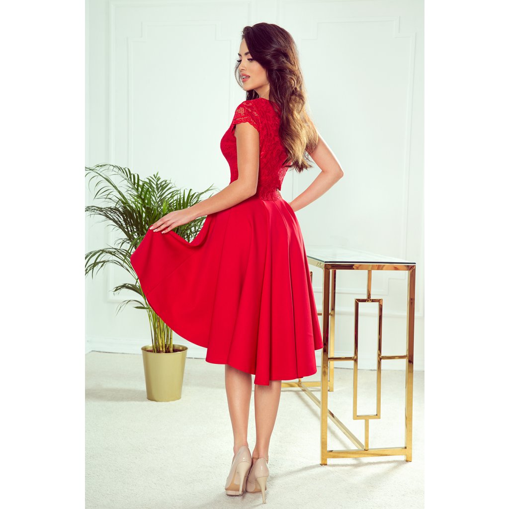 PATRICIA - Exkluzivní šaty s krajkou - červená barva 300-2