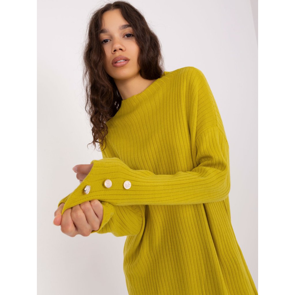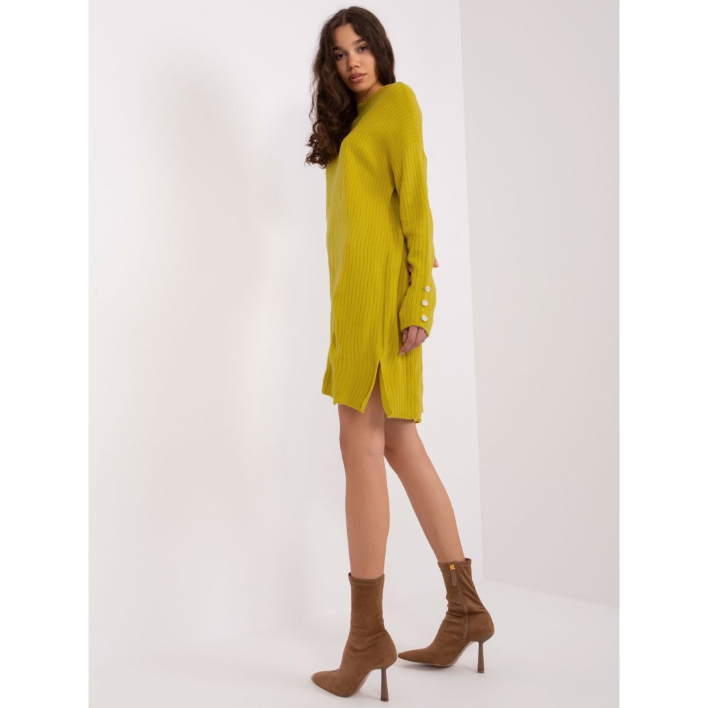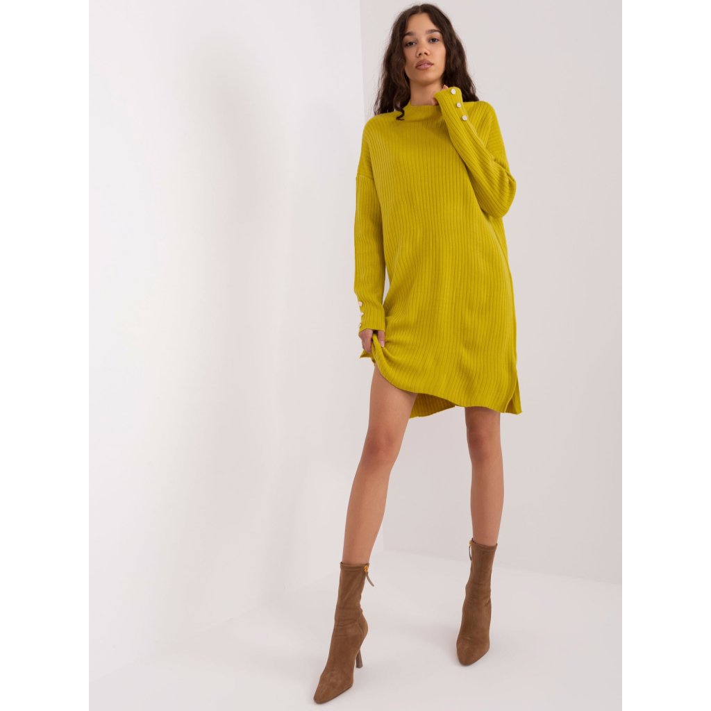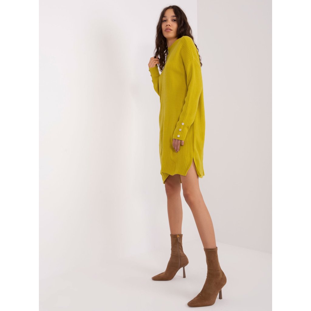 Dámké pletené šaty s dlouhými rukávy.