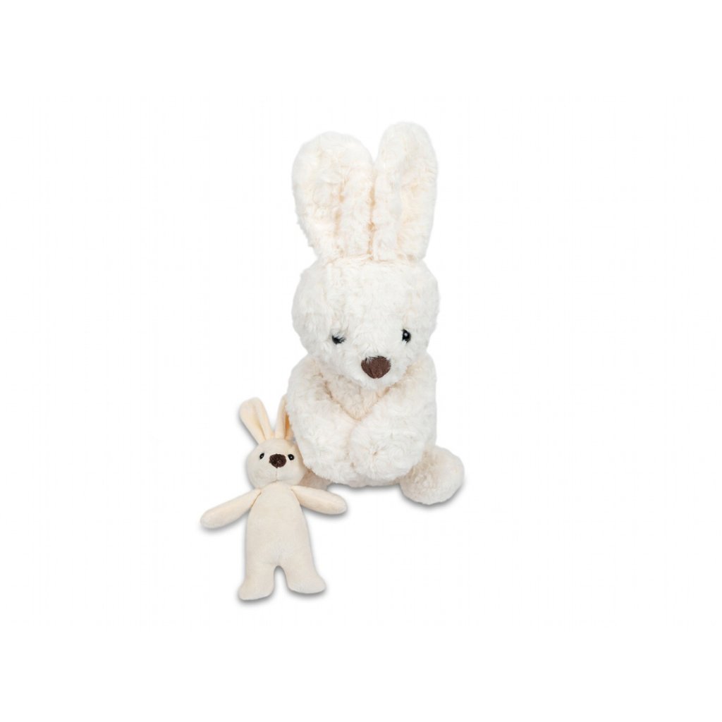 Roztomilý plyšový zajíc s mláďátkem v náručí v krémové barvě. Přineste do svého domova kousek roztomilosti s touto hebkou zaječí rodinkou. Ideální pro mazlení a jako dekorace do dětského pokoje.