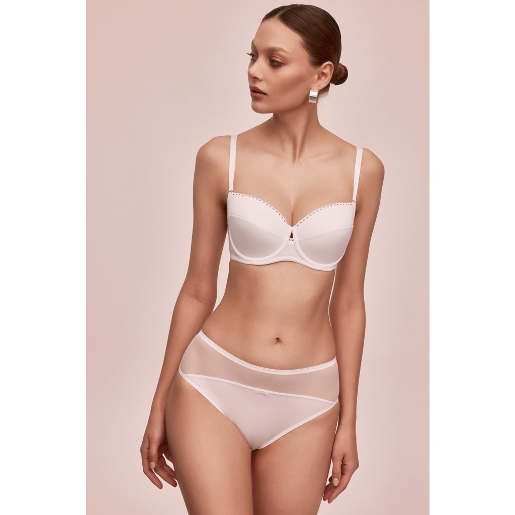 Luxusní polovyztužená podprsenka s kosticí vyrobená z příjemného mikrovlákna. Vnitřek košíčků je vyztužen měkkou pěnovou hmotou a podložen bavlněným úpletem. Ramínka jsou pevná, elastická, lehce nastavitelná a odepínatelná.Doplňkové parametry