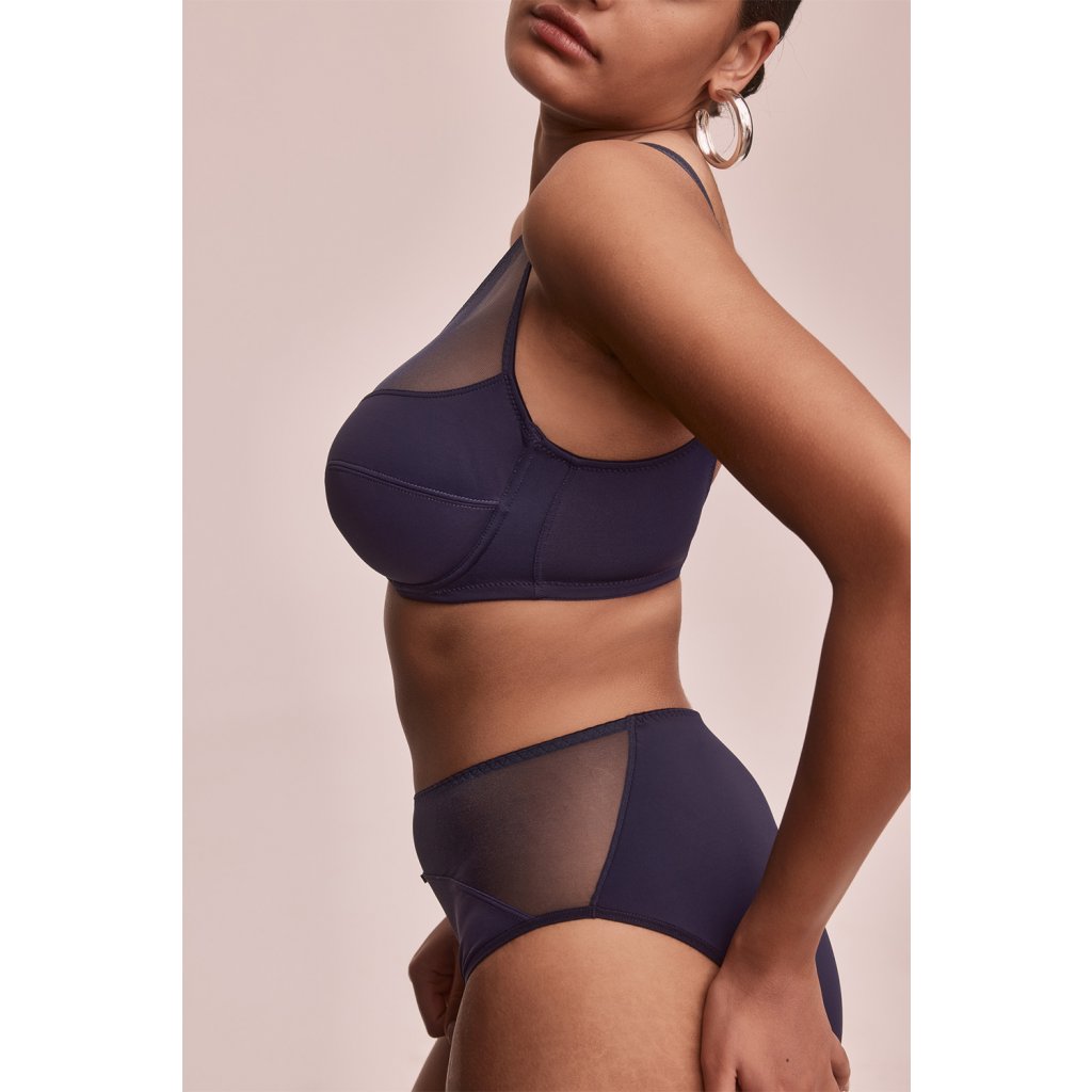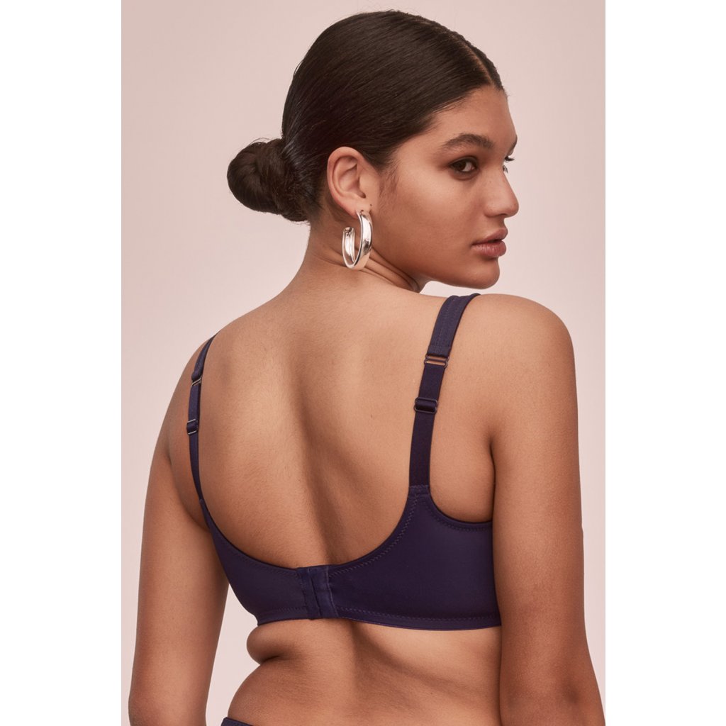 Klasická měkká podprsenka v tmavě modré barvě navržená pro ženy, které ocení pohodlí a jednoduchý styl. Dokonale se přizpůsobí tvaru prsou.
