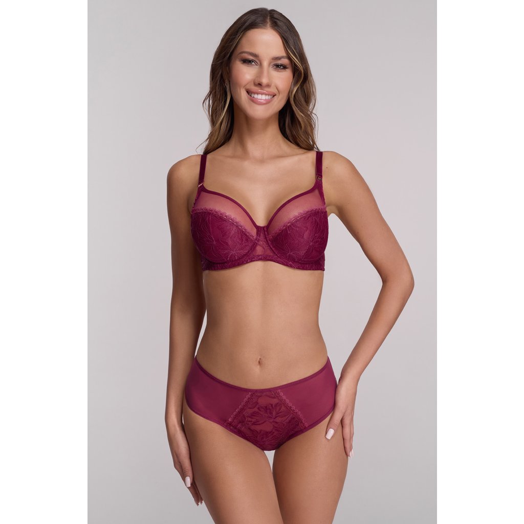 Smyslná měkká podprsenka v bílé barvě. Horní část košíčků je vyrobená z jemné síťovinky. Košíčky a můstek (střed podprsenky) jsou pokryté svůdnou krajkou. Dolní část košíčků je zesílená síťovinou. Zadní díl je vyrobený z pružné síťovinky. Mezi košíčky je umístěna mašlička se stylovou ozdobou. Podprsenka má svislé boční kostice. Ozdobná ramínka je možné nastavit, ale nelze je odepnout.Pro vytvoření kompletu doporučujeme kalhotky nebo tanga 1396.Složení: 88 % polyamid, 8 % bavlna, 4 % elastan.Doplňkové parametry