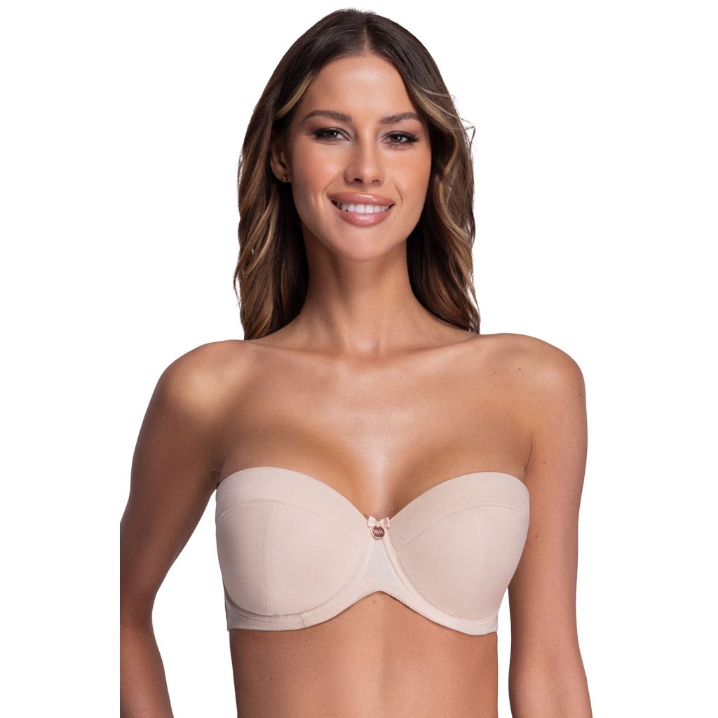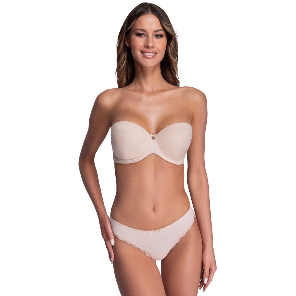 Elegantní dámská podprsenka bardotka v béžové barvě.Model má střih, který zvýrazňuje vrchní část dekoltu.