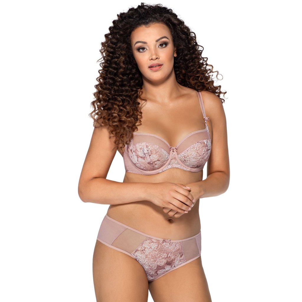 Podprsenka typu soft:- s kosticemi- měkké košíčky obšité krajkou s lesklou nití- košíčky podšité siťovinou- určená pro ženy s většími prsy- neodepínatelná a nastavitelná ramínka- zapínání na dva nebo tři háčky s třístupňovým nastavenímSložení: 88 % polyamid, 8 % bavlna, 4 % elastanDoplňkové parametry