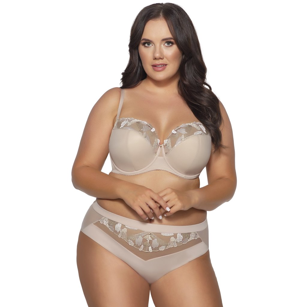 Elegantní polovyztužená podprsenka pro ženy s větším poprsím.- horní část košíčku zdobena lesklou výšivkou