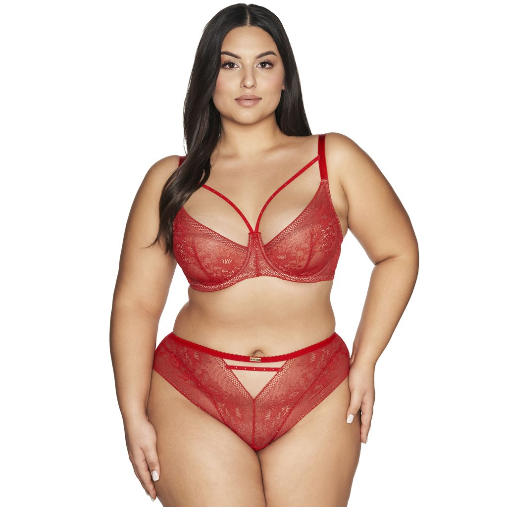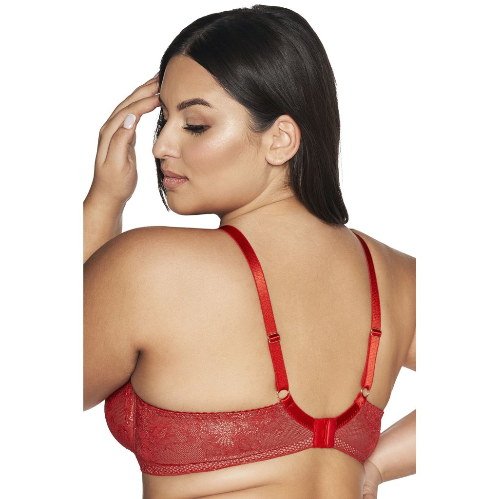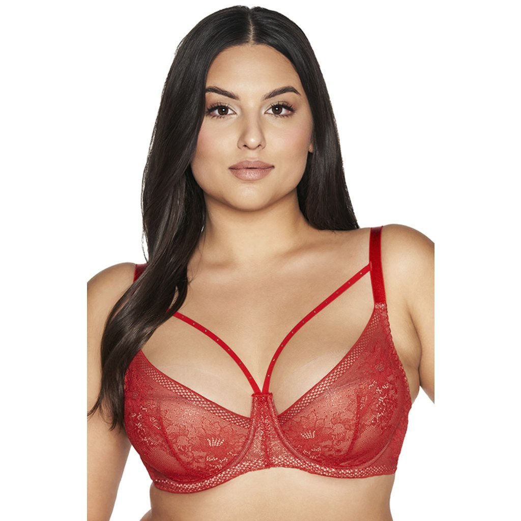 Sexy polovyztužená podprsenka v červené barvě.- horní část košíčku vyrobena z dvojitě skládané síťoviny