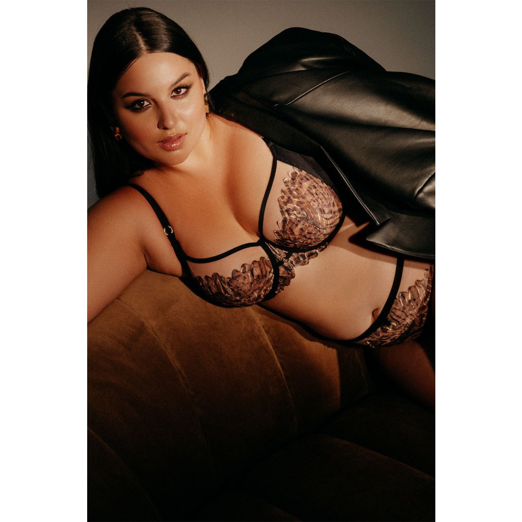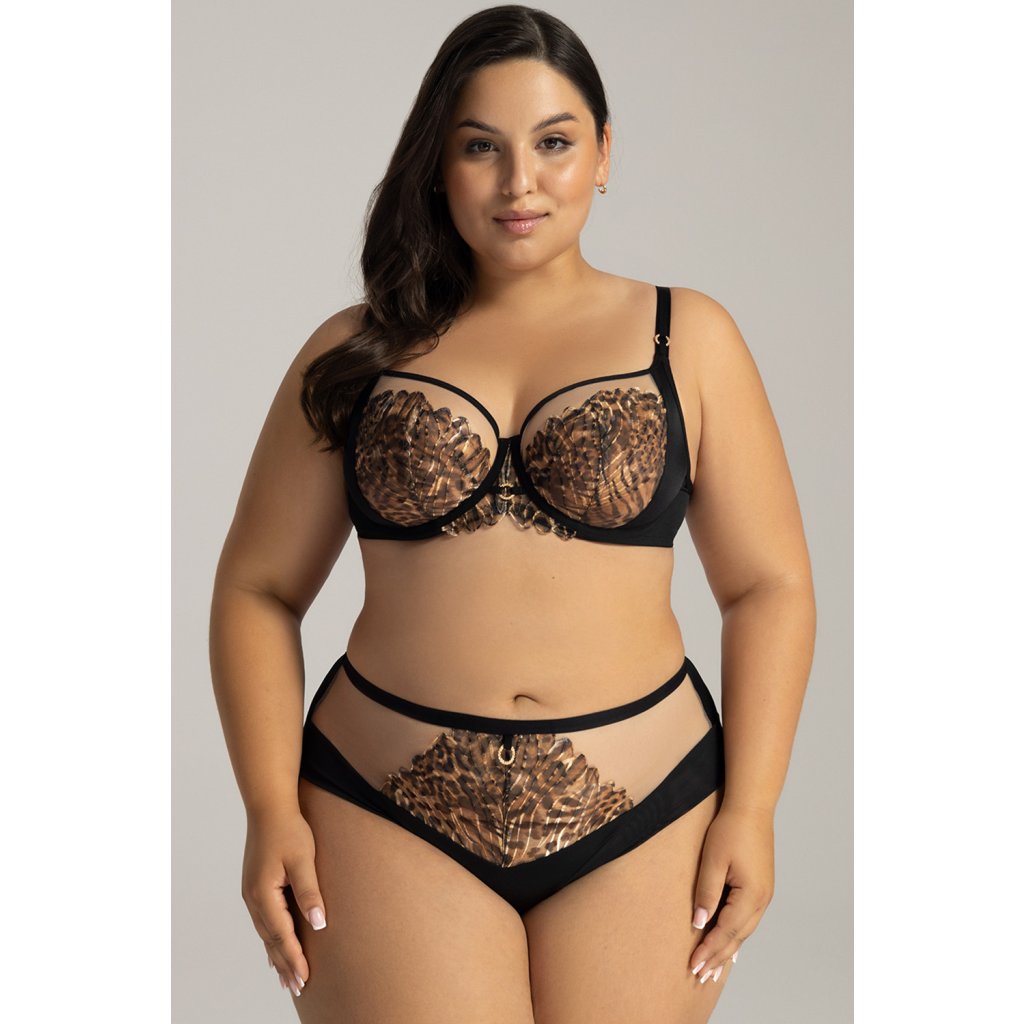 Elegantní nevyztužená podprsenka pro ženy s větším poprsím.košíčky potažené leopardí výšivkou na síťovině