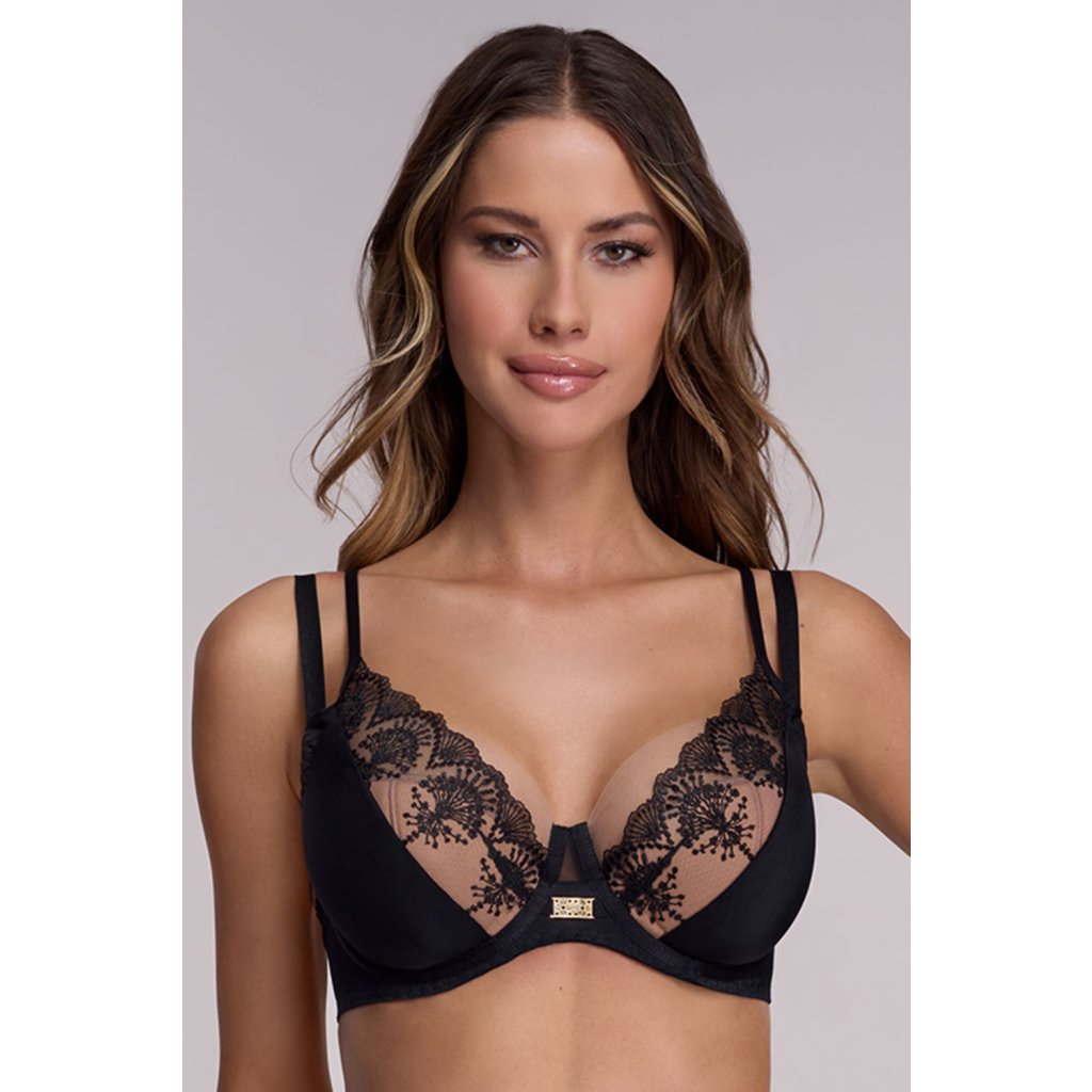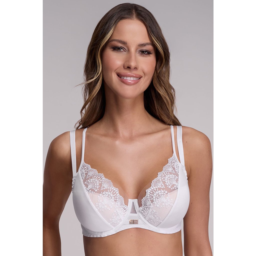 Elegantní polovyztužená damská podprsenka.horní část košíčku je vyrobena z dvojitě přeložené síťoviny