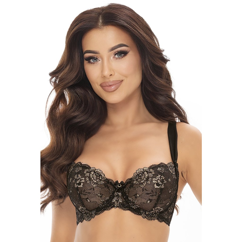 Sexy nevyztužená podprsenka v černé barvě.- model je vyroben z lesklé krajky