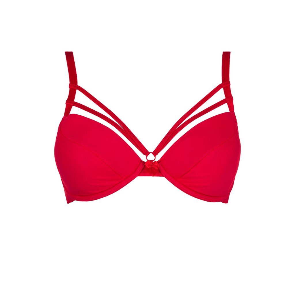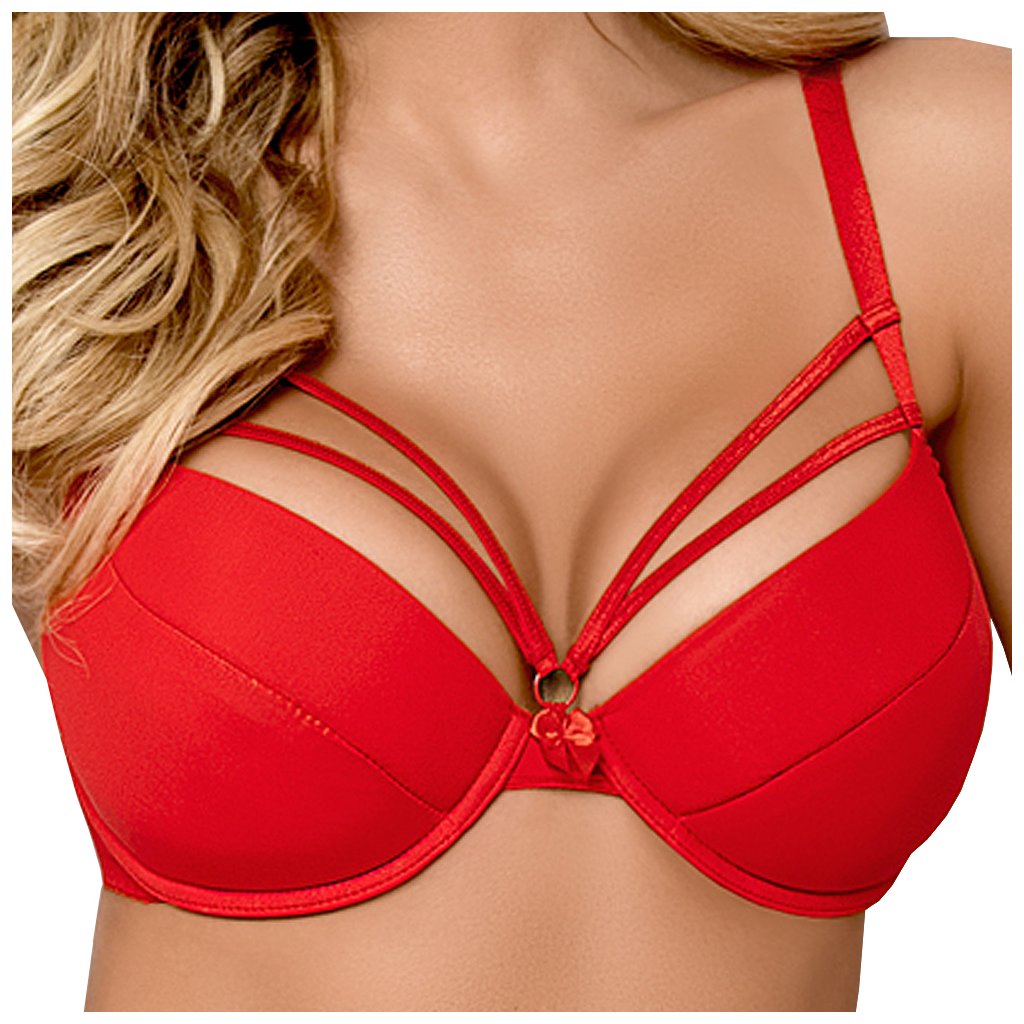 Push-up podprsenka Breva vás svede svojí vášnivou barvou a zajímavým zdobením dekoltu- díky kterému budete chtít odhalit trochu víc... Tenká elastická ramínka spojují ramínko s košíčky podprsenky
