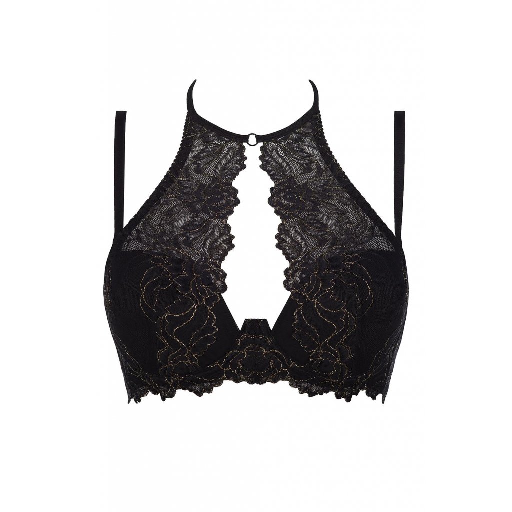 Jedinečná černo-zlatá podprsenka v podobě smyslného topu V-8261 vám zamotá hlavu! Jedinečný střih a měkkost látek doplní vaši krásu a zaručí vám maximální pohodlí. Zapínání za krkem na háčky a očka, bez ramínek.Složení látky: polyamid 60%, bavlna 16%, polyuretan 12%, polyester 7%, elastan 5%