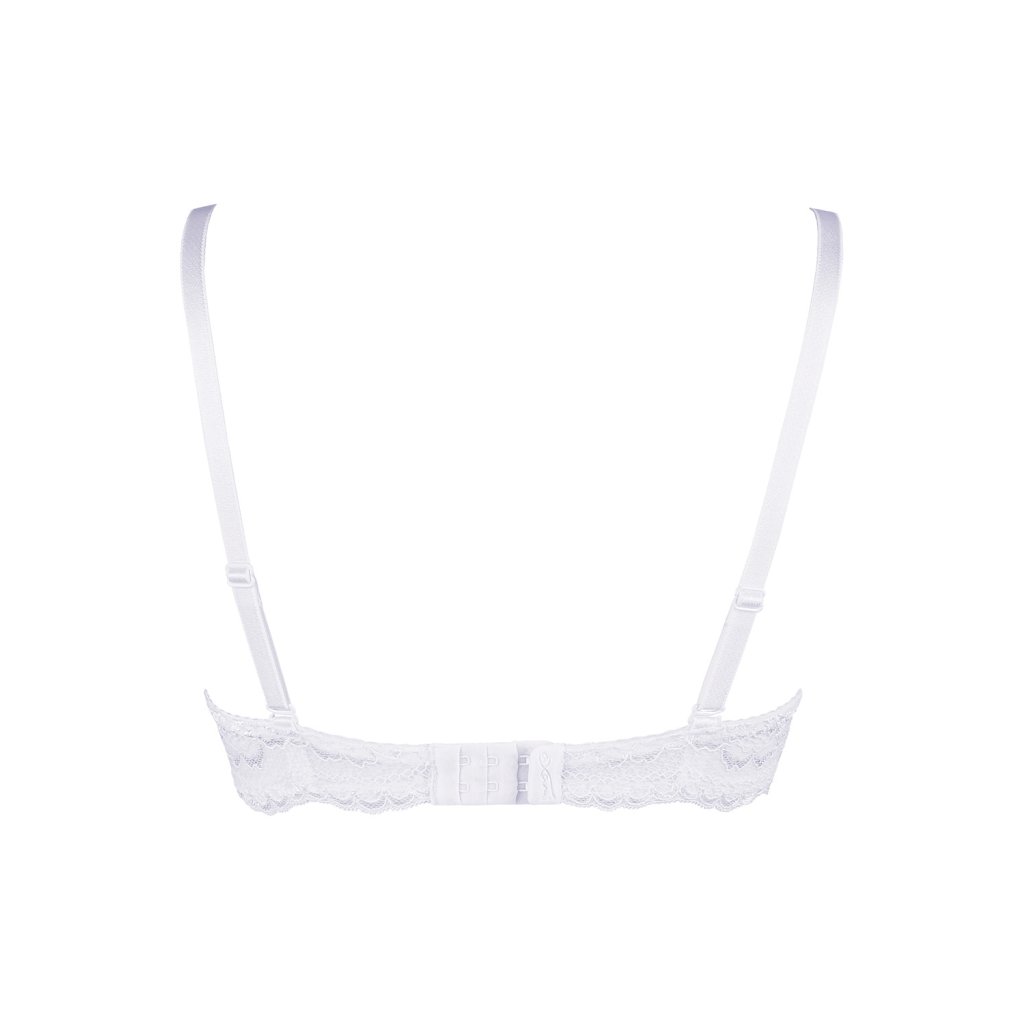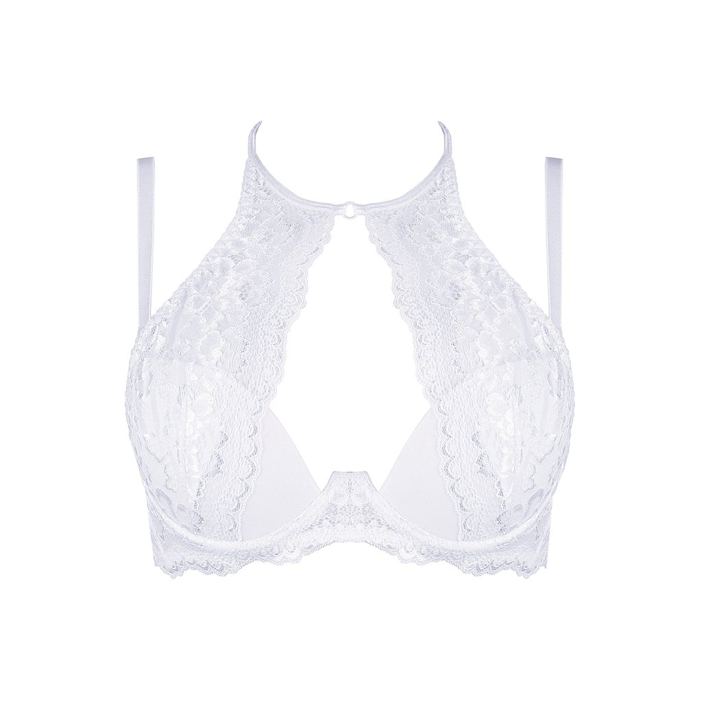 Nebeská bílá a dokonalá čistota je naším návrhem pro horké dny a horké večery. V této podprsence budete vypadat úžasně! Ukradněte tento večer jen pro vás a vašeho partnera. Pružná a na dotek příjemná bílá krajka, ze které nelze spustit oči. Model má nastavitelná odepínatelná ramínka, nastavitelný nákrčník, svislé boční kostice a třístupňové zapínání na dva háčky.- Na doplnění sady doporučujeme tanga V-9545.