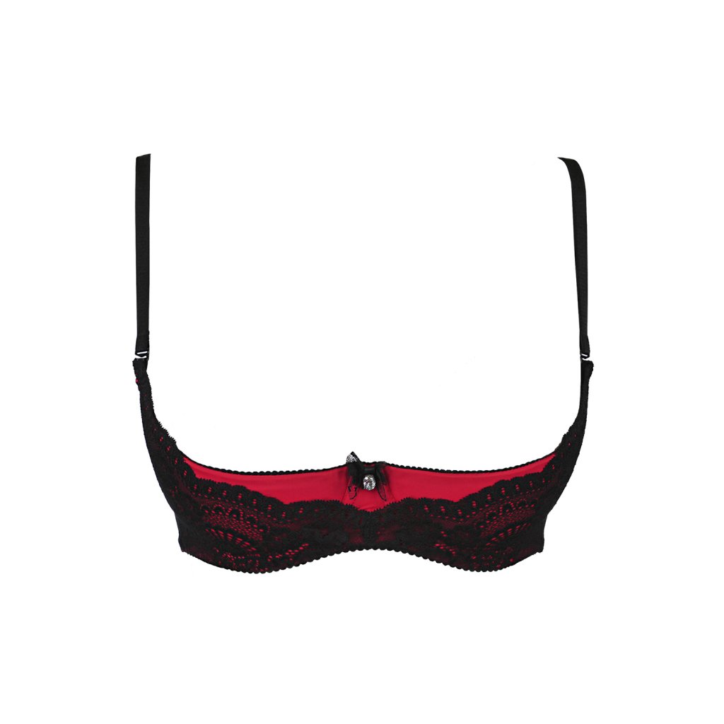 Červenočerná podprsenka typu peek-a-boo je skvělou volbou od Axami na večer pro dva.- s kosticí