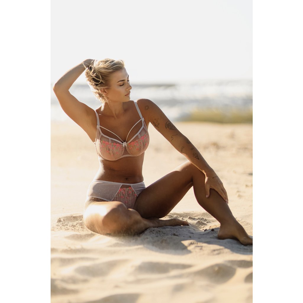 Dámská nevyztužená podprsenka Flora.- vyrobena z béžové síťoviny