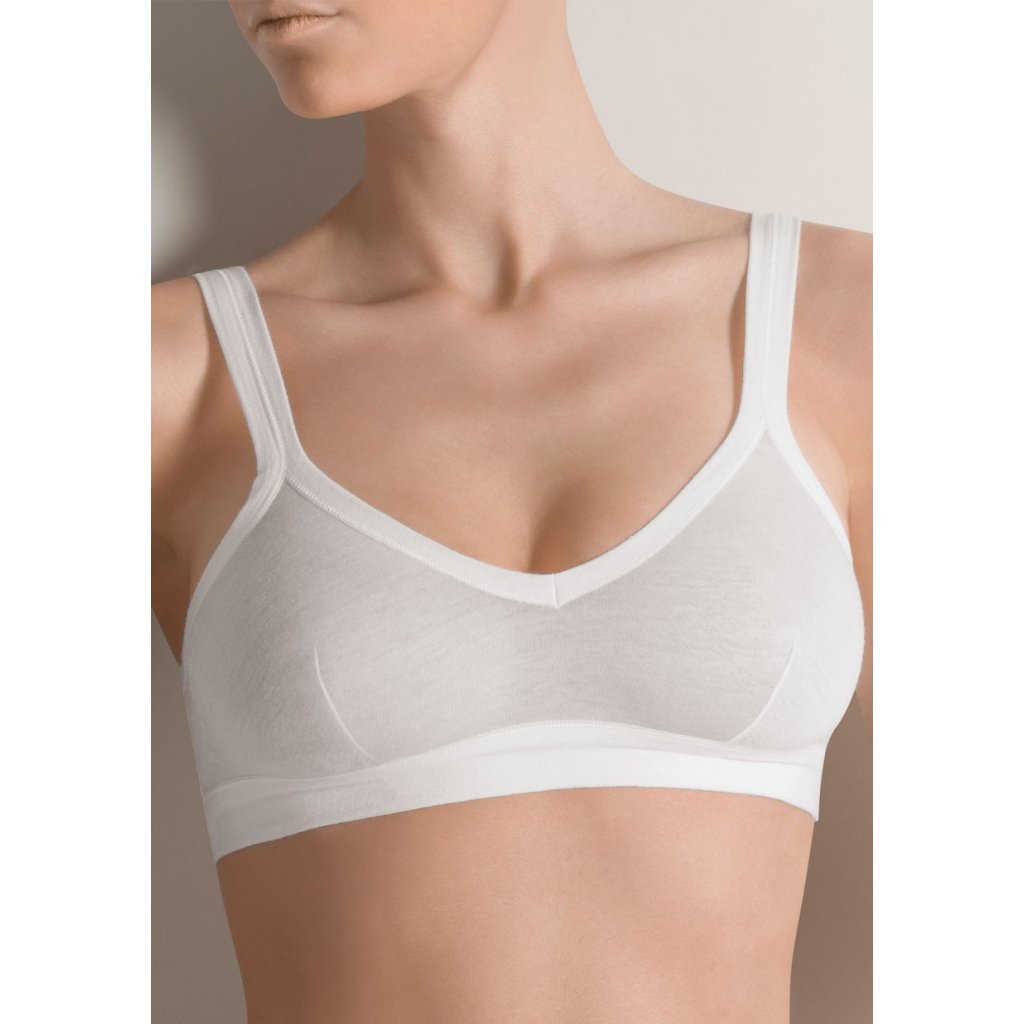Lambáda značky Cotonella. Nevyztužená lambáda má pevně všitá ramínka, která nelze délkově nastavit a nerozepínatelný obvod. Lambádka je vyrobena z vysokého podílu bavlny a je velmi příjemná na celodenní nošení.