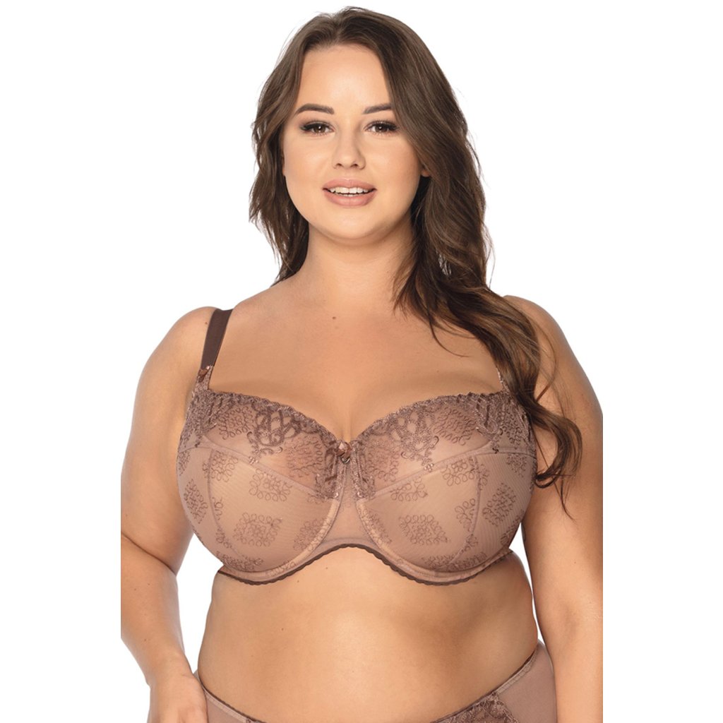 Polovyztužená podprsenka- z efektní vyšívané síťoviny- košíčky z vnitřní strany z poloviny podšité bavlnou- dráty podporují a tvarují prsa- obvodový pás ze stabilní tkaniny, s bočními kosticemi- nastavitelná, neodnímatelná ramínka- Konstrukce SS22Složení: 53% polyamid, 18% bavlna, 15% polyester, 9% elastan, 5% polyuretan.Doplňkové parametry