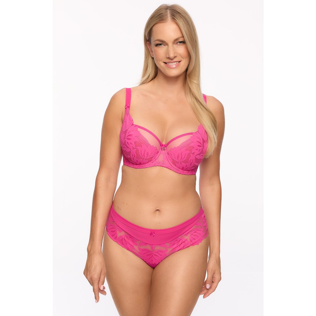 Nádherně ženský model Keto s polovyztuženými košíčky.- košíčky, můstek a boky pokryté krásnou krajkou.- horní část košíčků zakončená tylem a stuhou.- prohloubené košíčky dokonale podpírají poprsí- polootevřený výstřih a zvýšený střih, který zabraňuje vypadávání prsou při pohybu- nastavitelná, neodnímatelná ramínka- hladká záda- konstrukce: poloměkký materiál SS10Složení: Složení: 57 % polyamid, 18 % bavlna, 10 % elastan, 10 % polyester, 5 % polyuretan.Doplňkové parametry