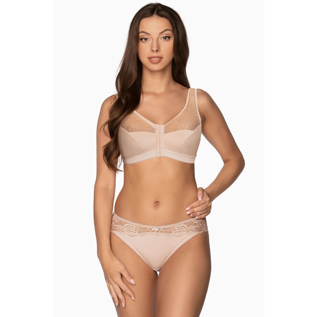 Pohodlná a komfortní dámská podprsenka pro ženy s větším a plnějším poprsím.Měkké košíčky nemají kostice. Podprsenka je vyrobená ze síťoviny a do poloviny je podšitá tkaninou. Horní linie modelu je průsvitná a je ozdobená krajkou. Model se zapíná ve přední části háčky. Pohodlná široká ramínka jsou zárukou komfortu při nošení.Složení: 84 % polyamid, 16 % elastan.Doplňkové parametry