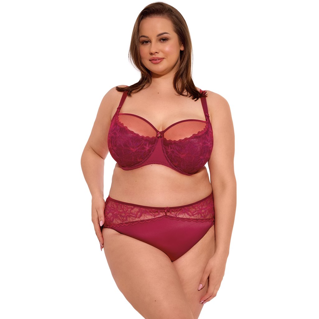 Jemná podprsenka v krásné malinové barvě pro ženy s větším poprsím.- horní část košíčku ze síťoviny
