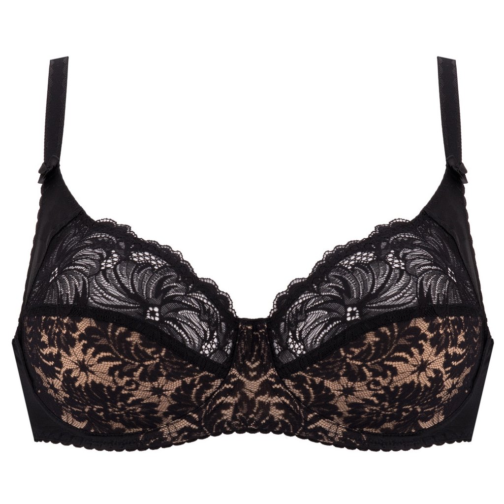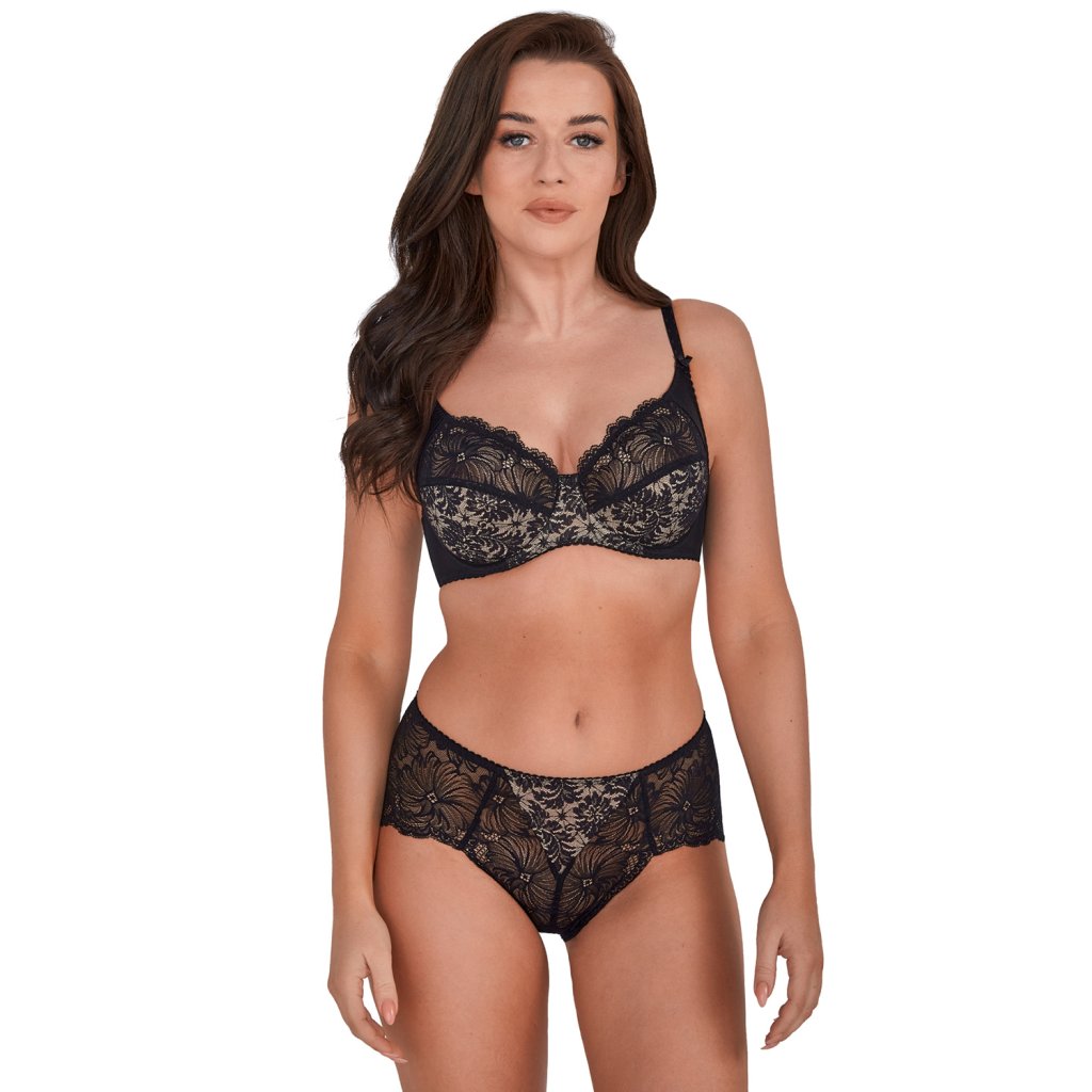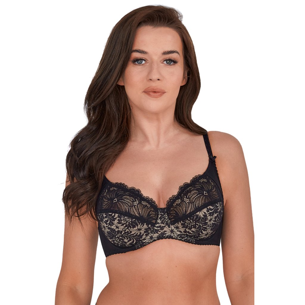 - měkká podprsenka vyrobena z krajky v kontrastu barev béžové a černé