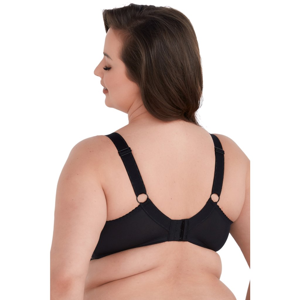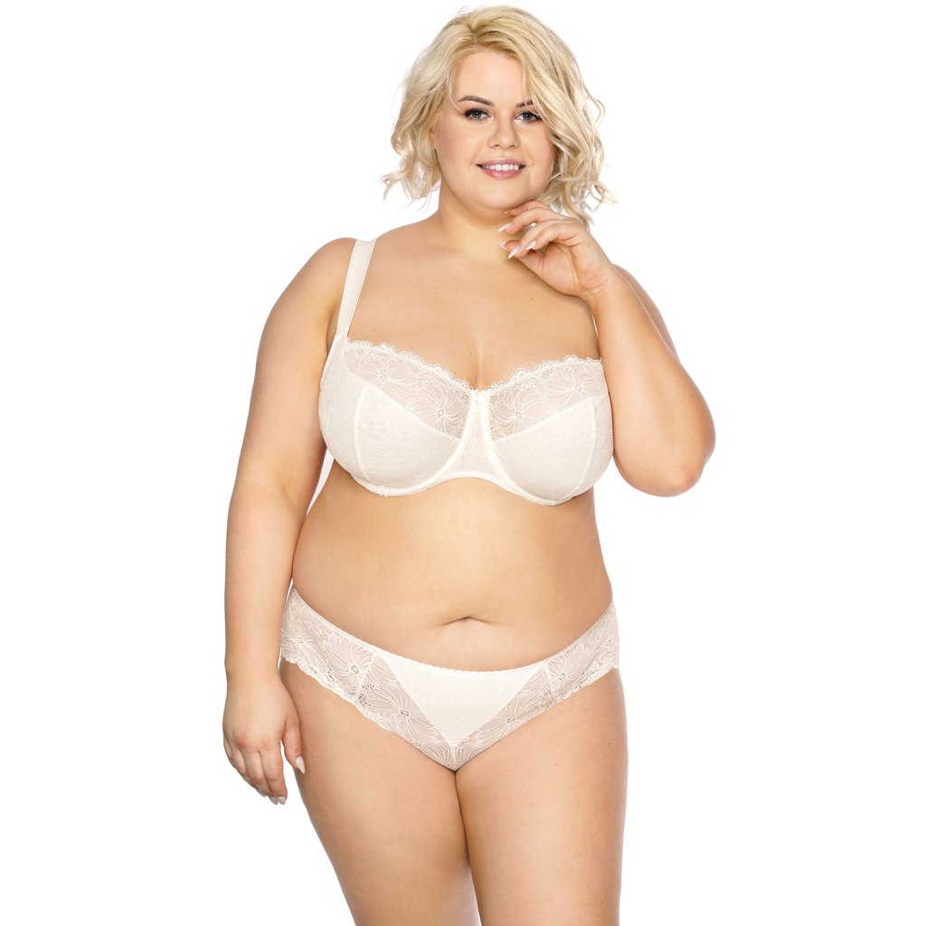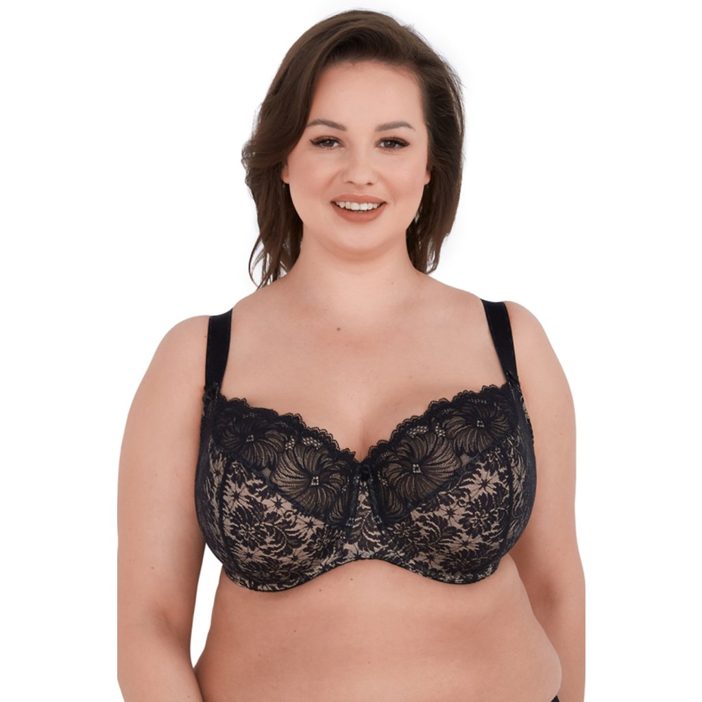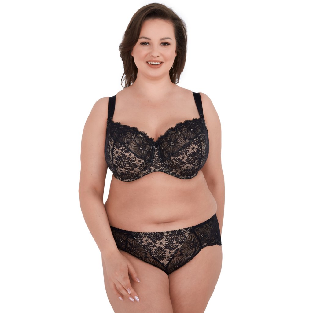 Velmi vkusná podprsenka na podzimně-zimní sezónu pro ženy obdařené plnějšími tvary (velikosti až do košíčků K)! Měkká podprsenka z krásné ažurové krajky a úpletu v černo-béžové barvě. Boční části z pružné elastické síťoviny. Spodní část košíčků a můstek kryté hladkým béžovým úpletem. Krásně stlačuje a tvaruj poprsí. Široké třířadé háčky s třístupňovou regulací. Nastaviteln ramínka, nejsou odepínací, dekorované na spojení s košíčky malými mašličkami. Kvalitní ramínka, odolná vůči deformaci a roztažení. Šířka přizpůsobená ke všem velikostem.Do setu doporučujeme kalhotky Chantal.