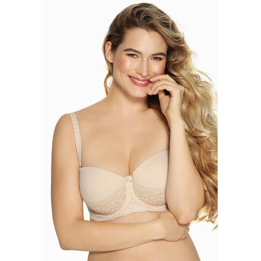 Jedinečná bardotka Cynthia. Polstrovaný košíček nemá žádné švy a je tepelně tvarovaný z jednoho kusu houby. Jediný takový model ve sbírce GAIA. Polovina košíčku je hladká, spodní polovina je pokrytá krajkou.- odnímatelné ramenní popruhy, které lze zcela odepnout nebo nahradit jinými popruhy.- vnitřní strana obvodu je pokryta silikonovým proužkem, díky kterému podprsenka drží bez ramínek.- senzační pod výtvory s otevřenou náručí- boční velrybí kosti zlepšují stabilitu obvodu a tkanina se neodvaluje.- béžová barva je neutrální a v létě je ideální pod lehké a tenké oblečení.- konstrukce: Bardot M13Složení: 55 % polyester, 32 % polyamid, 8 % elastan, 5 % bavlna.Doplňkové parametry