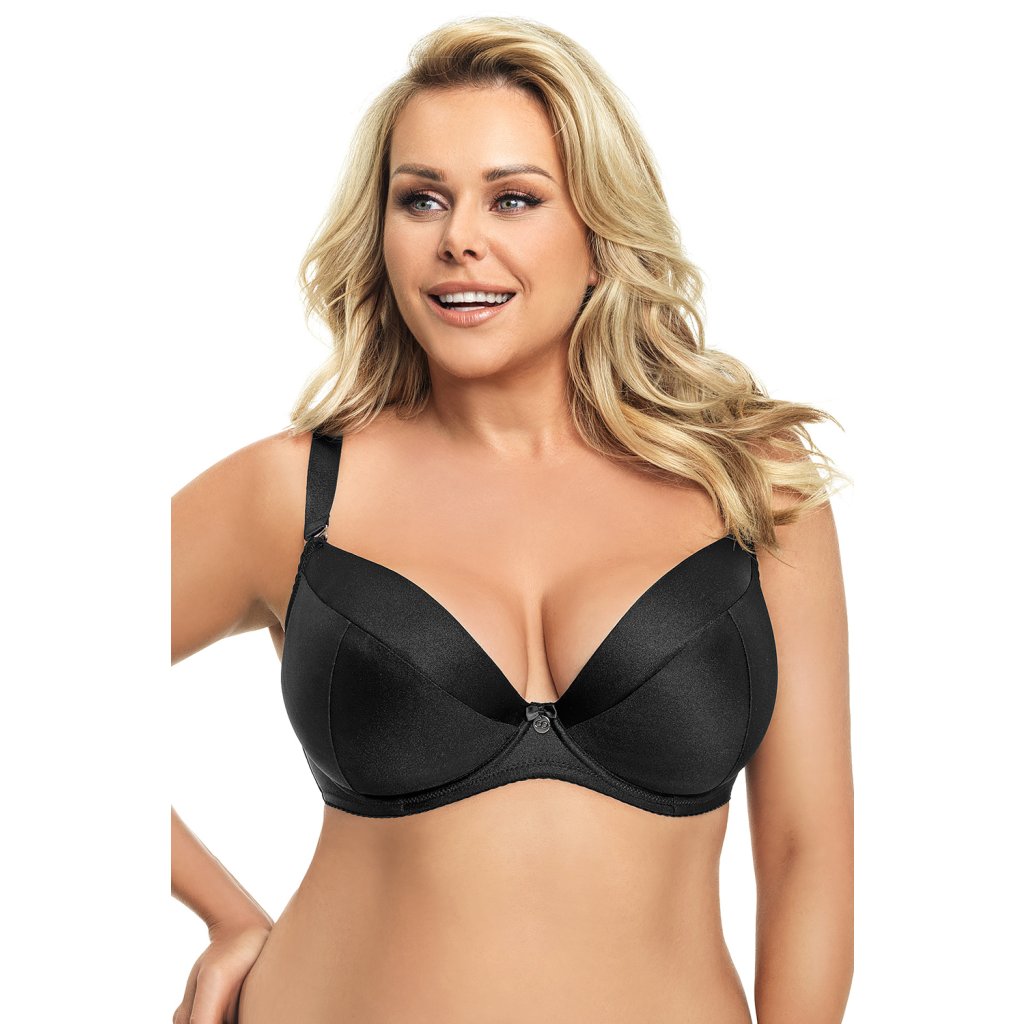 Nadčasová klasická elegantní dámská vyztužená podprsenka. Podprsenka je vyrobená z měkké hladké látky. Vnitřní strana je pokrytá bavlnou. Mezi košíčky je umístěná saténová mašlička s přívěskem. Podprsenka ideálně obepíná a zvýrazňuje poprsí. Model se zapíná dvouřadovým háčky s trojí možností nastavení obvodu. Díky zapínání a díky svislým bočním kosticím se model dokonale přizpůsobuje postavě. Ramínka je možné nastavit i odepnout. Složení: 90 % polyamid, 7 % elastan, 3 % polyester.Doplňkové parametry