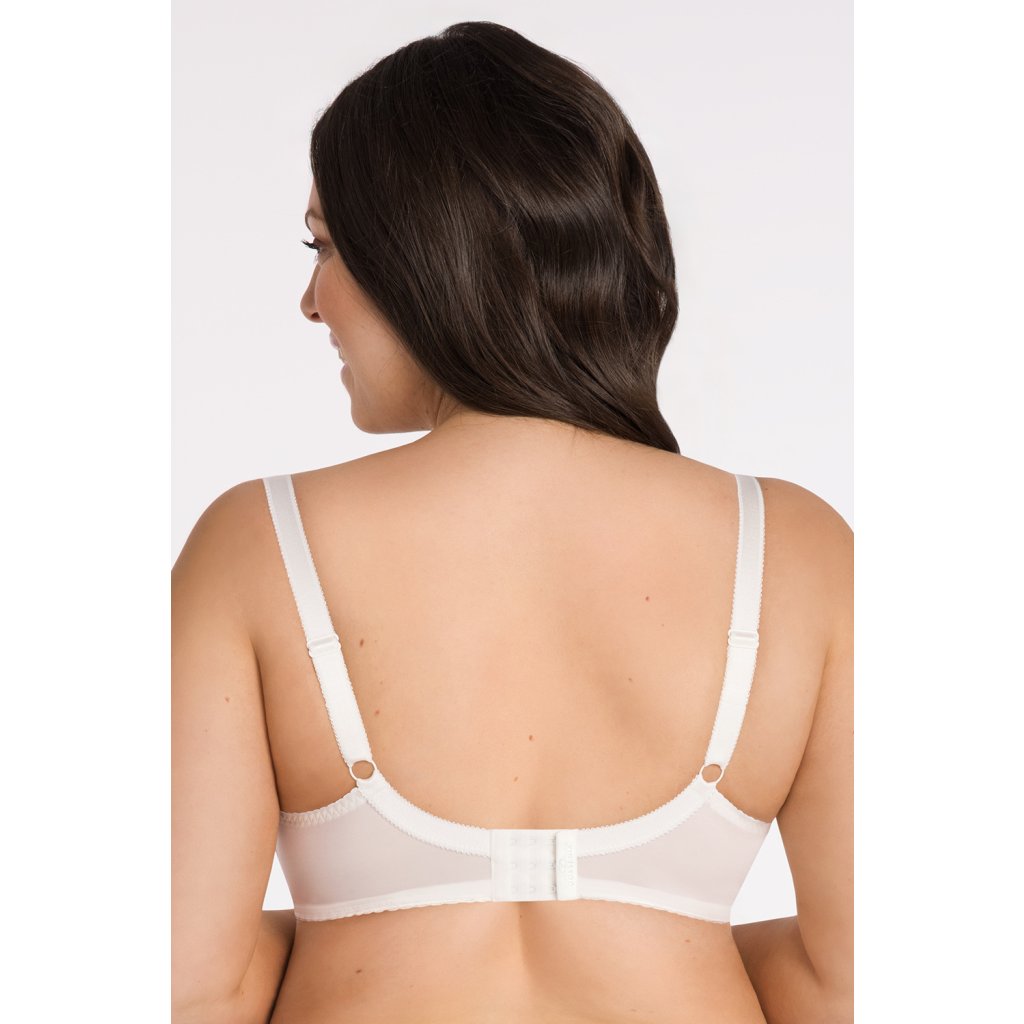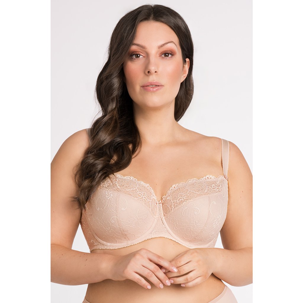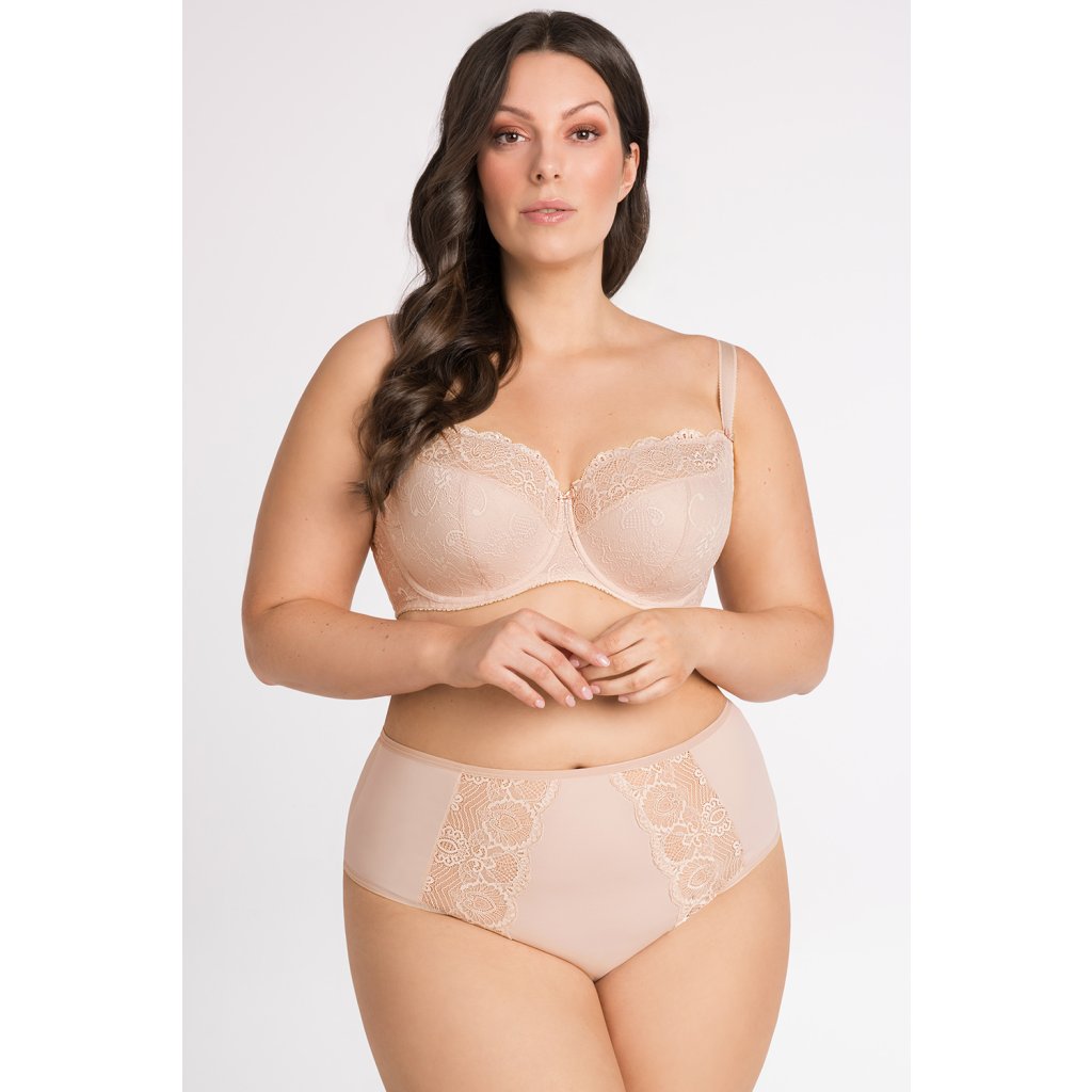Elegantní polovyztužená krajková podprsenka.Spodní část košíčků modelu je vyztužená měkkou pěnou, která je z vnitřní strany podšitá bavlnou. Díky tomu je podprsenka při nošení velmi pohodlná. Horní část košíčků je vyrobená z krajky podšité jemnou nepružnou síťovinou, díky které podprsenka krásně přiléhá k poprsí. Tento model nádherně stahuje poprsí ke středu hrudníku, nádnáší poprsí a vytváří pěkné oblé tvary.Můstek je vyrobený z krajky a střed podprsenky zdobí málá půvabná mašlička.Ramínka je možné nastavit, ale nelze je odepnout. Šířka ramínek závisí na rozměru podprsenky. Na bocích modelu jsou svislé kostice. Podprsenka se zapíná na dvou nebo třířadové háčky (v závislosti na rozměru) s trojí možností nastavení obvodu.Složení: 71 % polyamid, 8 % elastan, 21 % bavlna.Doplňkové parametry