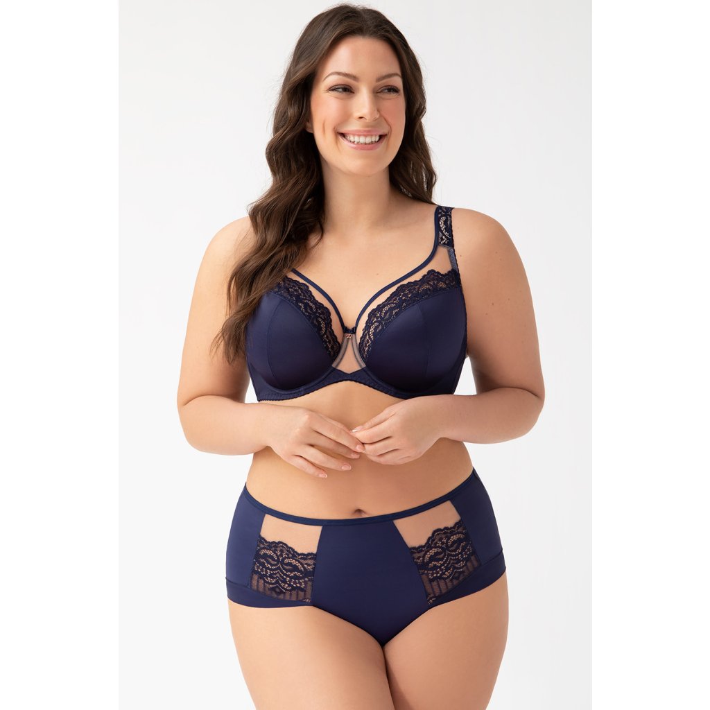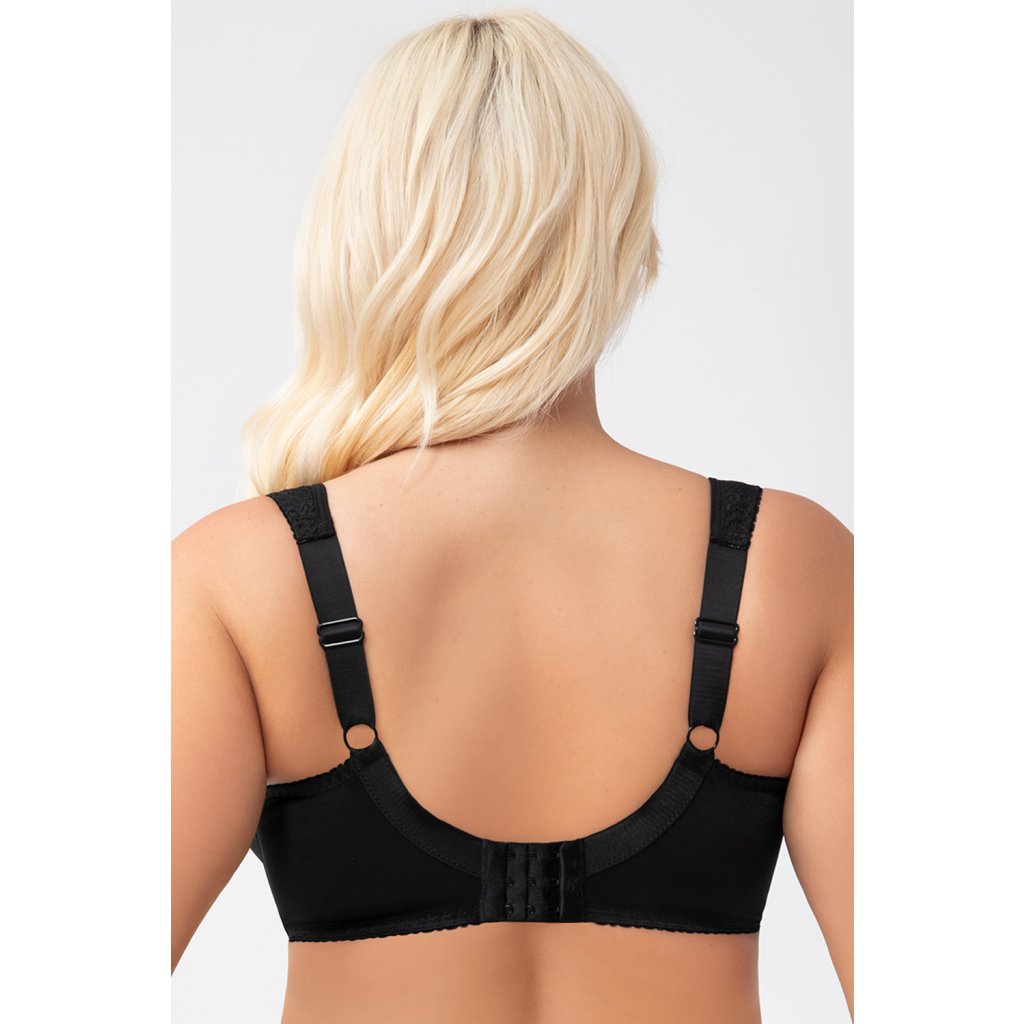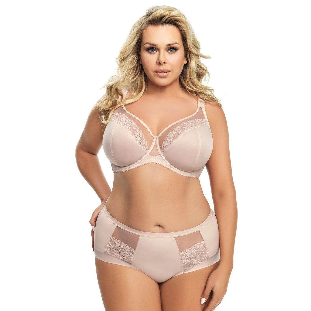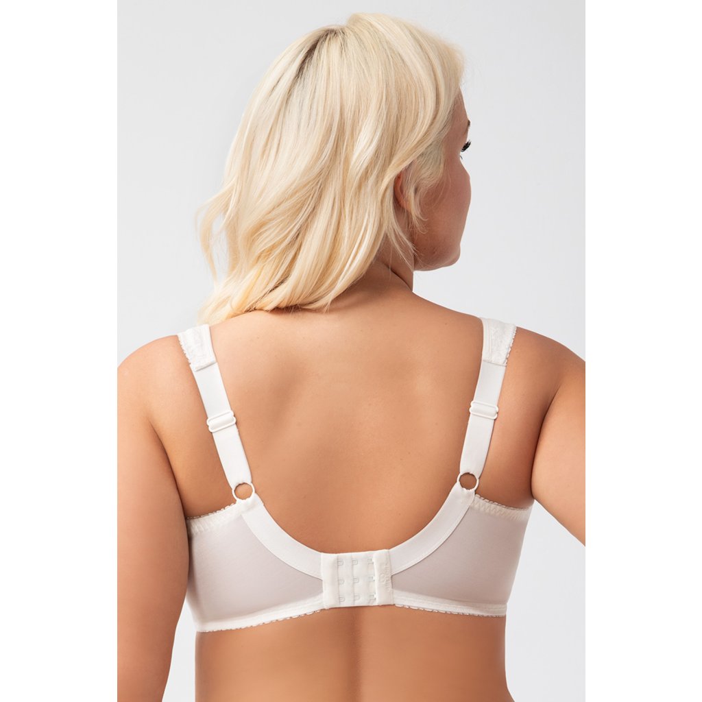 Měkká, nevyztužená podprsenka. Košíčky dobře obepínají poprsí a drží ho na místě, krásně zvýrazňují dekolt. Spodní části košíčků jsou vyrobeny ze stabilního, matného úpletu. Horní část je vyrobena z průsvitného tylu, překrytého krásnou krajkou. Můstek je vyroben z hladšího úpletu a tylu. Košíčky jsou tvarovány drátkem, který obepíná prsa. To zajišťuje, že prsa jsou dokonale vycentrovaná, zvednutá a udržují si krásný, zaoblený tvar.Široké boky z pevného lycra úpletu, navíc vybavené svislými kosticemi, zajišťují, že podprsenka drží na místě.