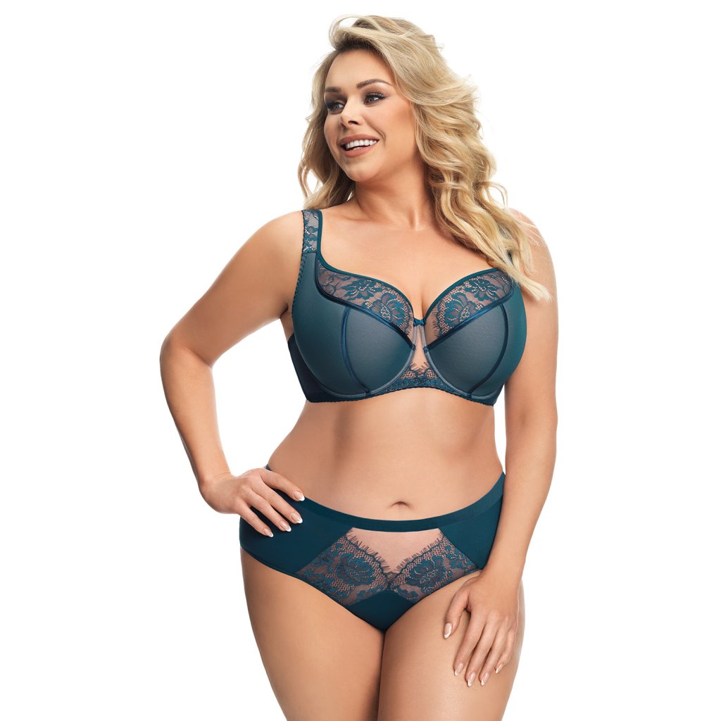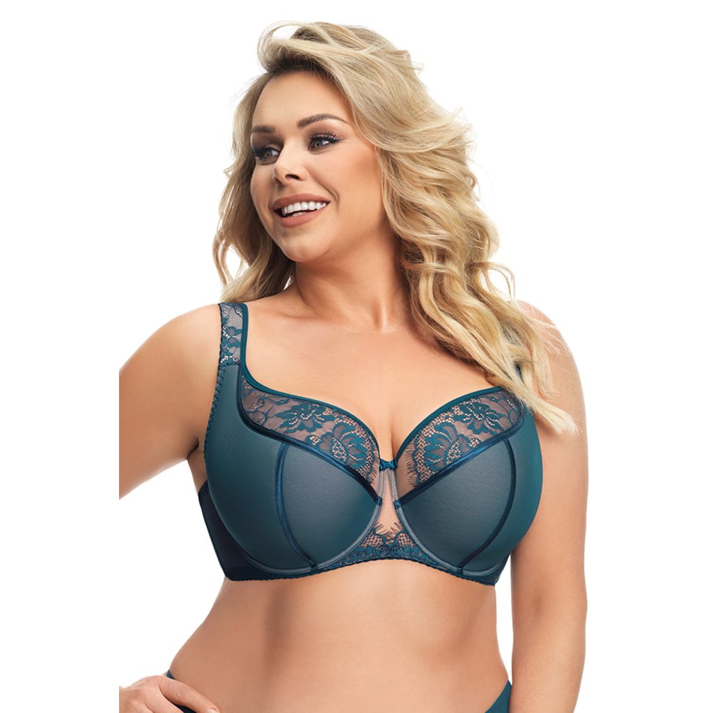 Krásná, pohodlná, polovyztužená podprsenka z krásného tylu v kombinaci s krajkou. Tento model se dodává ve třech barvách: černé, krémové a zelené.Měkká pěnová výplň ve spodní části košíčků. Horní část košíčků podprsenky je pro zpevnění podšitá tylem. Střed podprsenky dokonale přilne k můstku. Boky jsou vyrobeny z Lycry vysoké gramáže, odolné proti roztažení. Košíčky jsou profilované s drátkem kolem prsou. Díky tomu jsou prsa dokonale shrnutá dovnitř, zvednutá a udržují si krásný, zaoblený tvar.