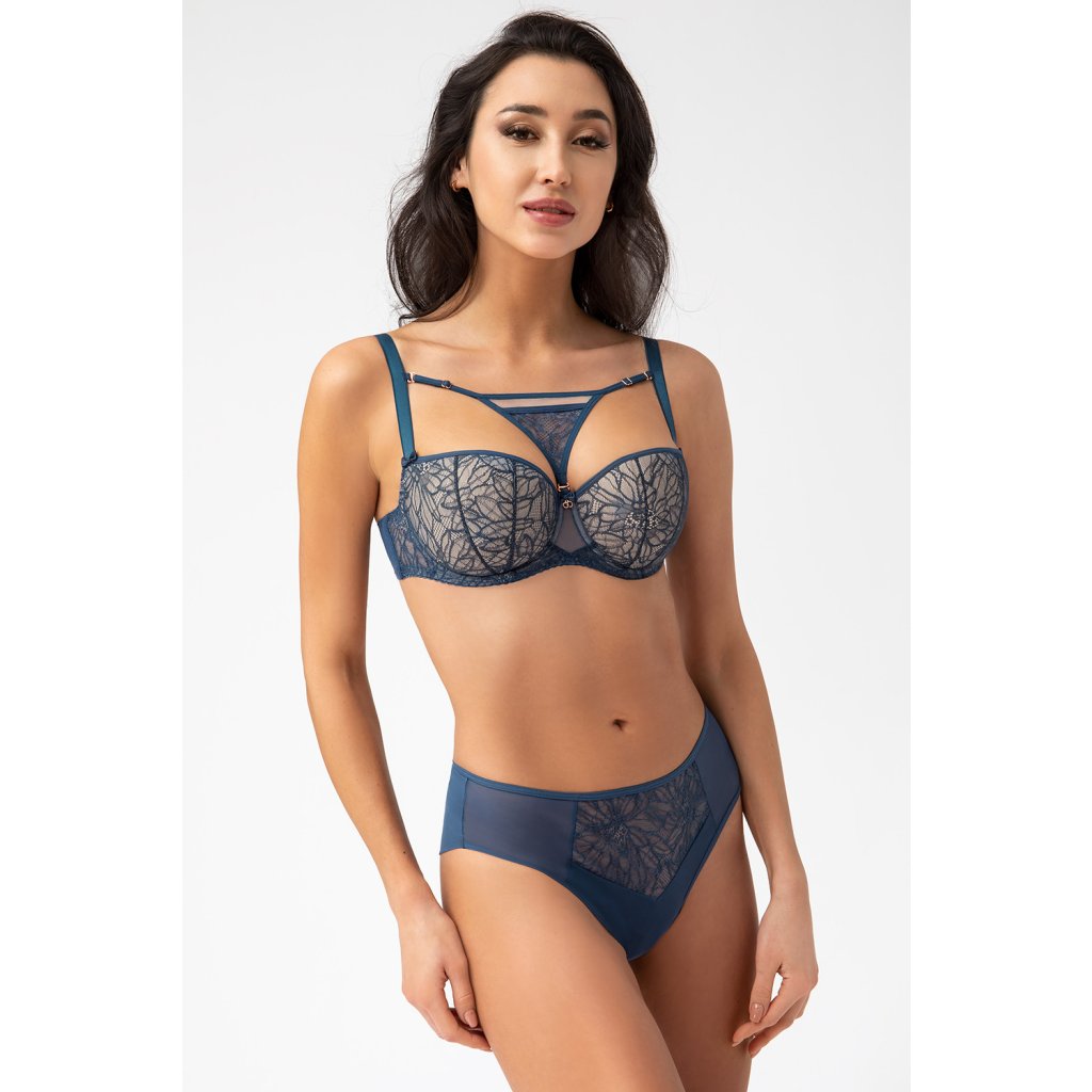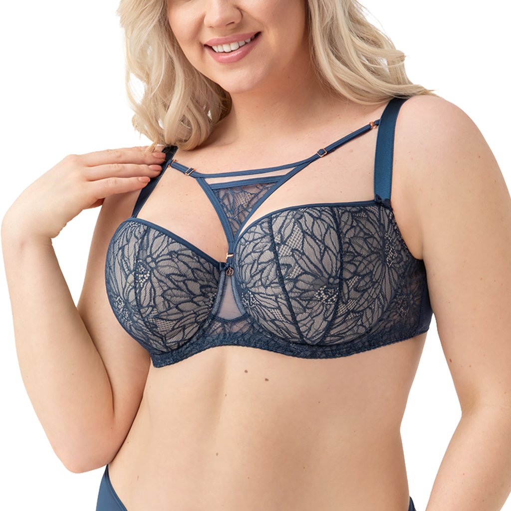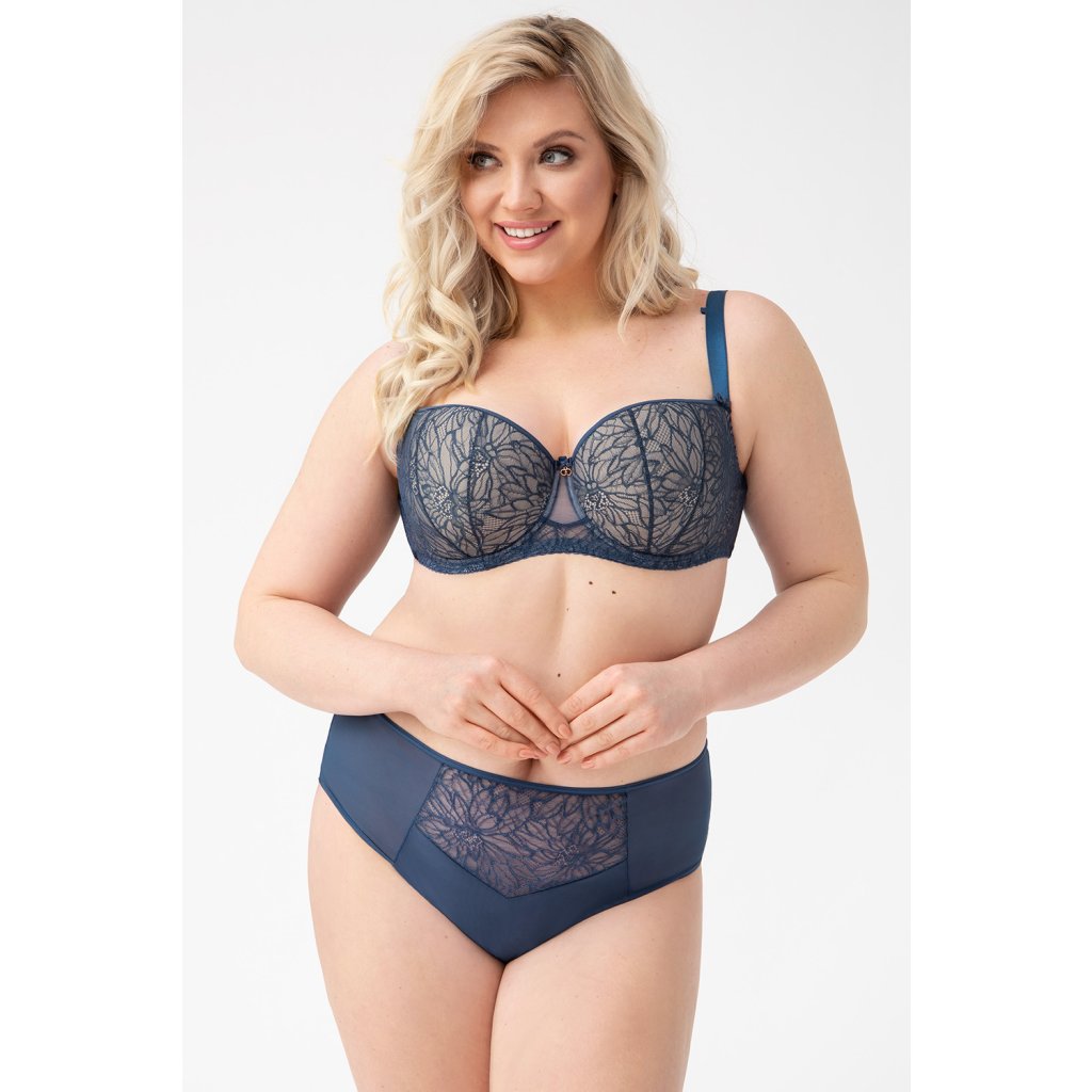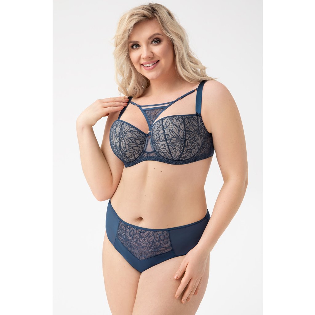 Krásná vyztužená balconettka, která zaujme svým french blue odstínem. Tvar košíčků zaručuje dokonalé exponování a držení poprsí. Ňadra se stanou plnější, kulatější. Dodatečná ozdoba v podobě trojúhelníčkového chockeru z tylu vás nenechá chladnou. Můžete jej regulovat a také zcela odepnout. Záleží jen na vás, zda budete chtít tímto kouskem zvýraznit celkový outfit. Košíčky mají poddajnou pěnovou výztuhu. Na ni vyniká květinový motiv. Linii dekoltu tvoří hladký lem. Košíčky mají na vnitřní straně také kapsičky pro vložení dodatečných vycpávek. Obvod je příjemně přiléhavý, dodatečně podšitý. Zapínání je řešeno klasickými háčky. Kostice jsou přizpůsobeny nejen délkou, ale i šířkou. Proto si můžete být jistá dokonalým padnutím. Krásná a výjimečná podprsenka, která dodá vašim ženským křivkám šmrnc.Složení: 90% polyamid, 7% elastan, 3% polyester