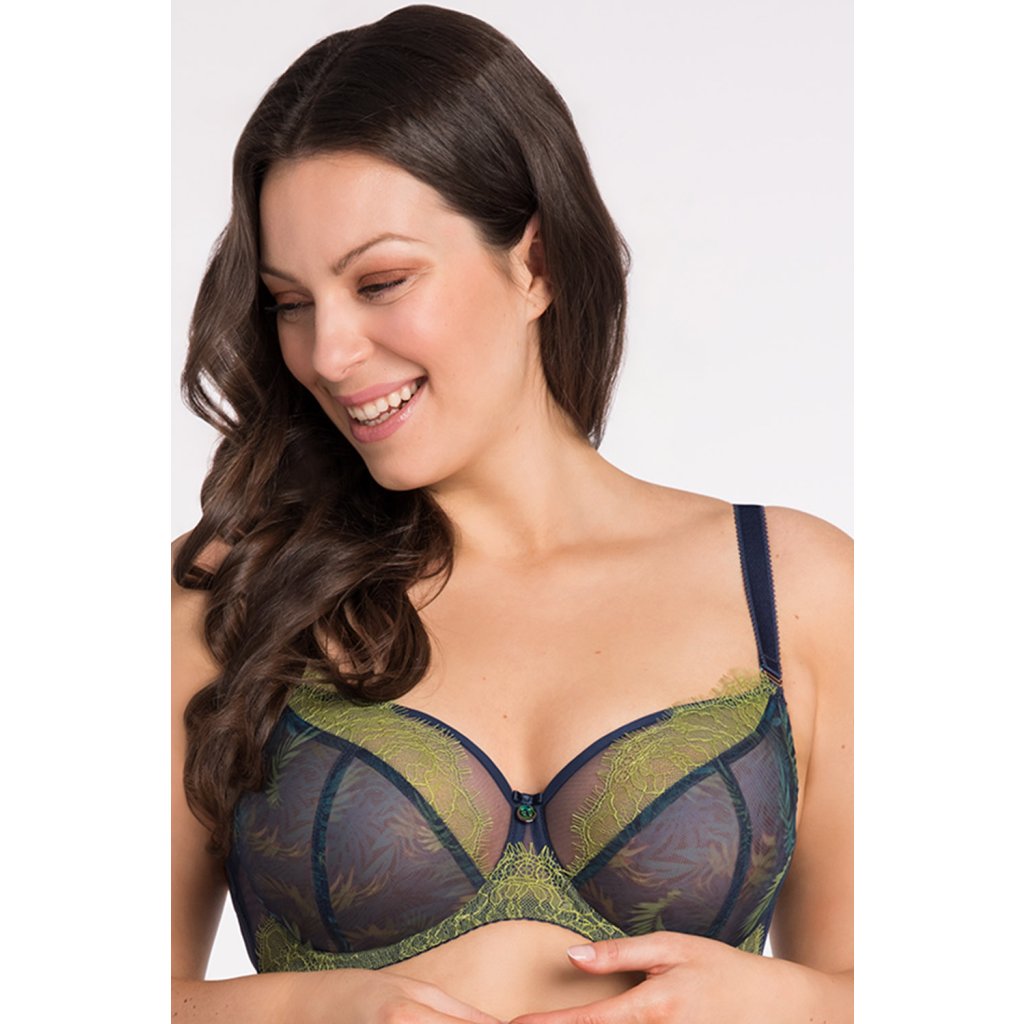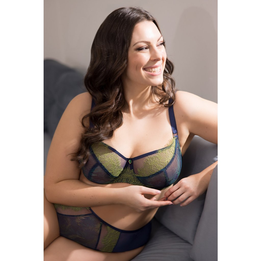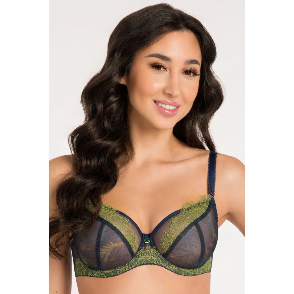 Nevyztužená podprsenka pro ženy se středními, velkými a velmi velkými prsy v tmavě modré barvě.- poskytuje efekt zvedání a sbírání prsou dovnitř