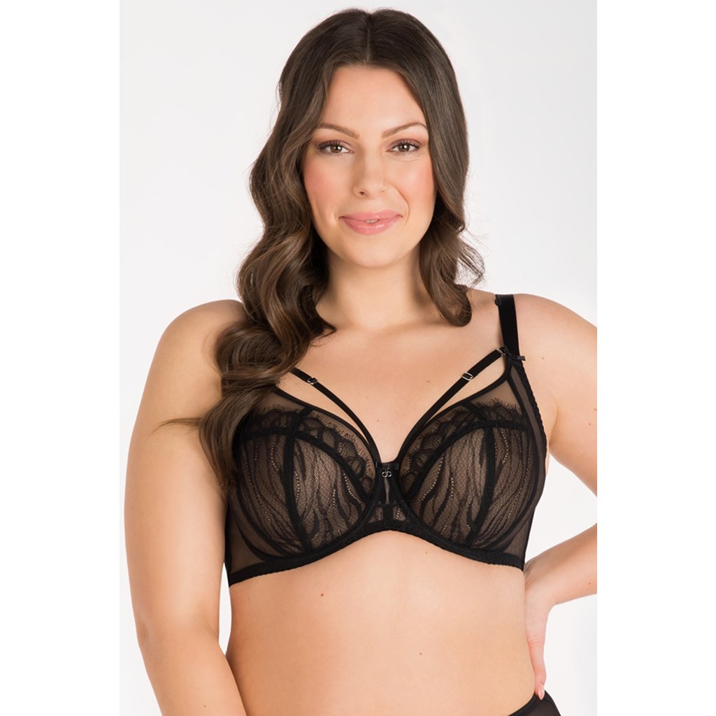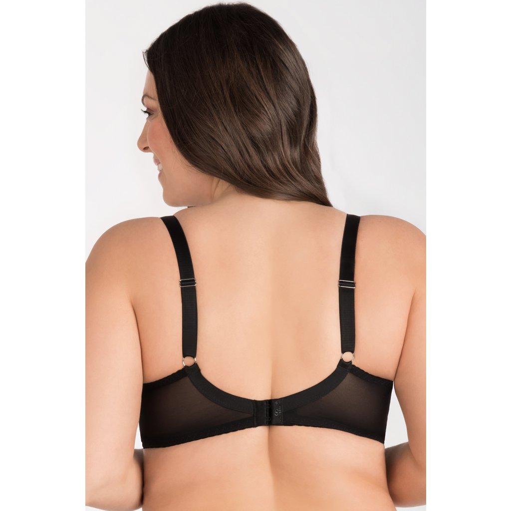 Měkká podprsenka pro ženy se středním a velkým poprsím, černá.- model s 4dílným dělením košíčků