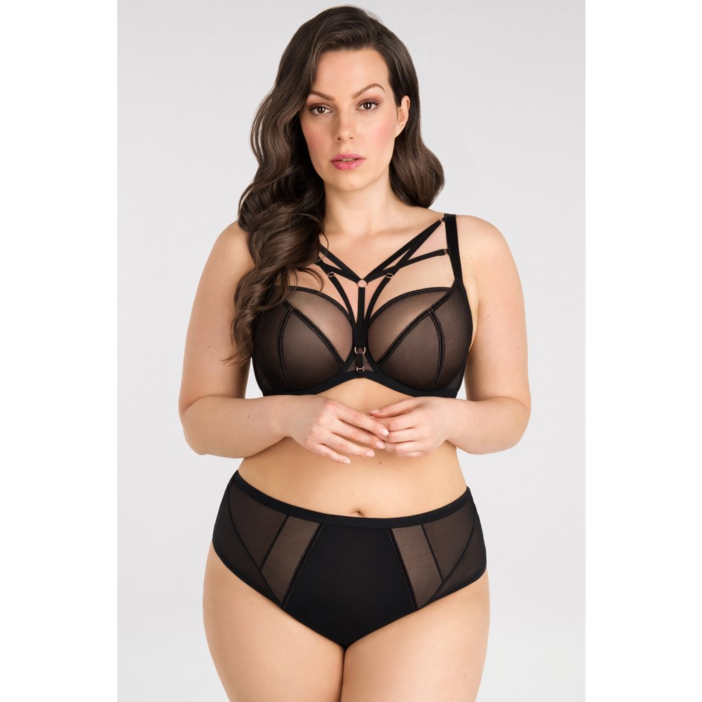 Měkká podprsenka pro ženy se středními, velkými a velmi velkými prsy.- 3dílné košíčky vyrobené výhradně z tylu s ozdobným měděným prošíváním