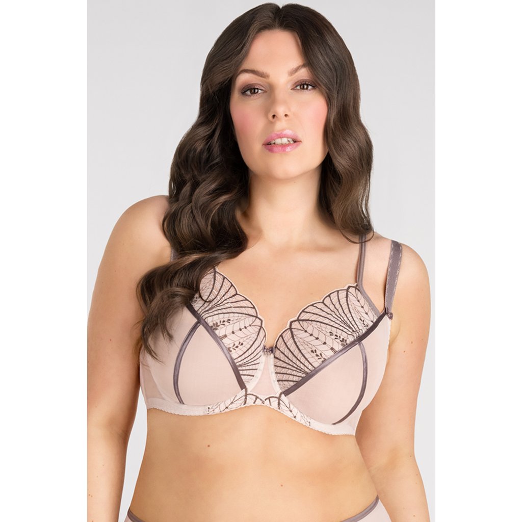Elegantní měkká podprsenka v béžové barvě.- ideální nabídka pro ženy se středními, velkými a velmi velkými prsy - horní část košíčku je pokryta jemnou výšivkou