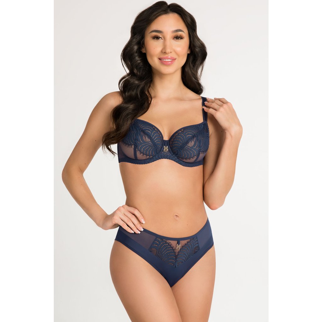 Elegantní nevyztužená podprsenka v tmavě modré barvě.- ideální volba pro ženy se středními a velkými prsy