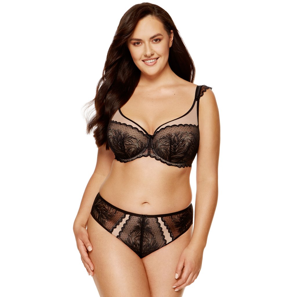 Dámská vyztužená podprsenka.- vyrobena z béžové síťoviny potažené černou krajkou