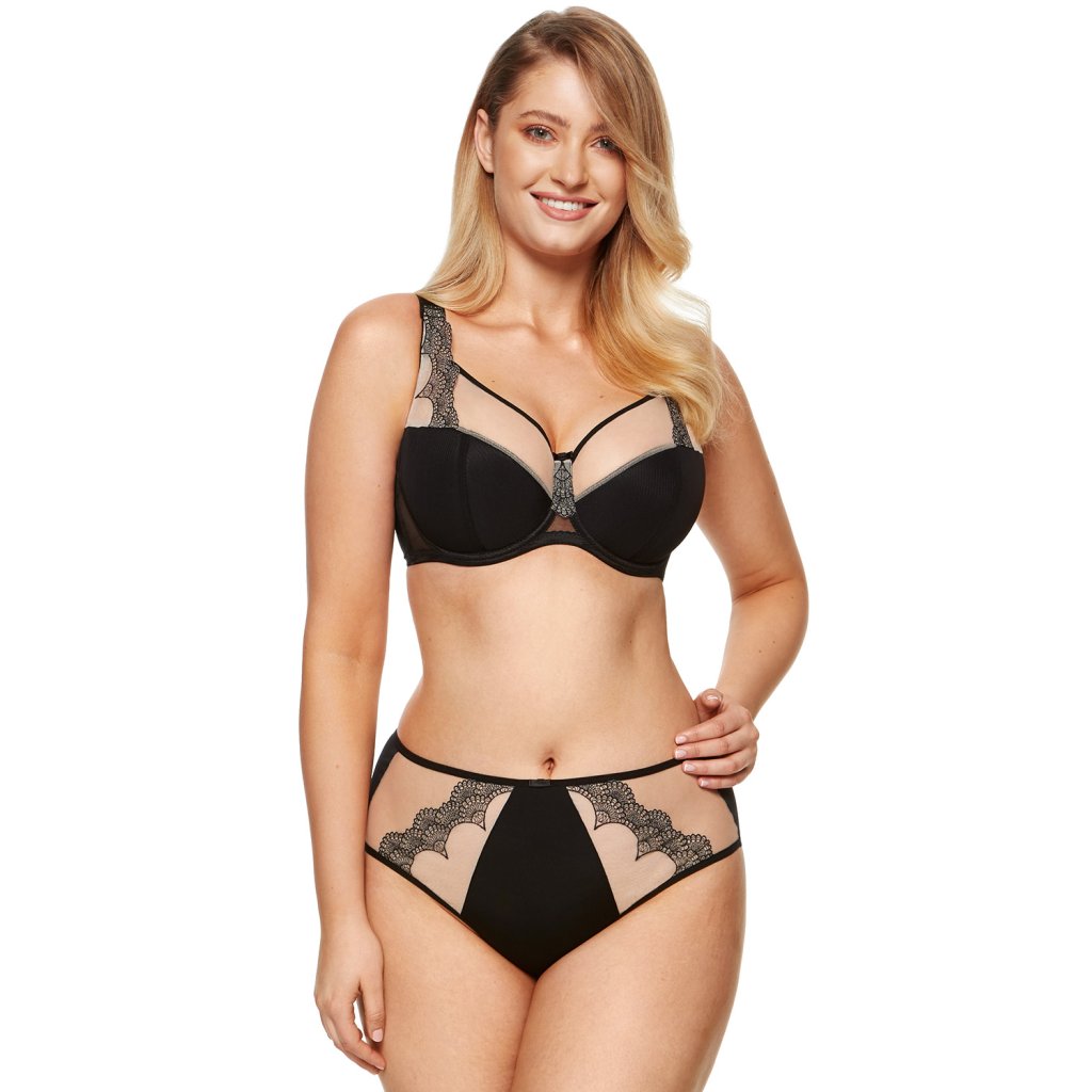 Elegantní podprsenka z úpletu, tylu a výšivky. Navrženo s ohledem na velké velikosti.- misky třídílné