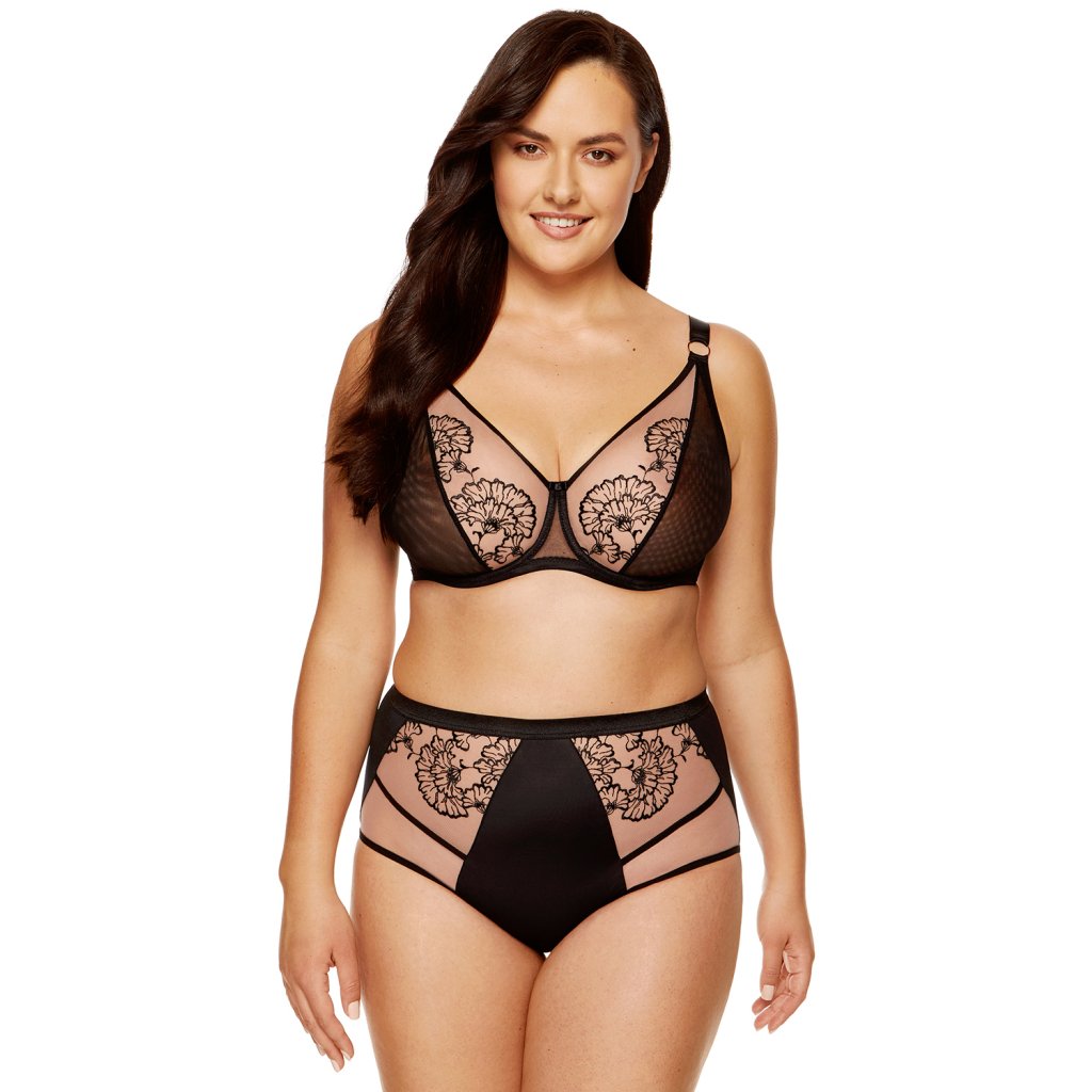 Elegantní nevyztužená podprsenka- průhledné, vytažené košíčky z dvojité síťoviny a výšivky