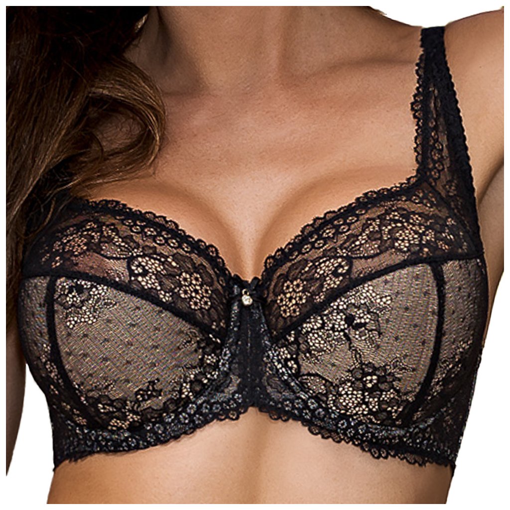 Smyslná a svůdná polovyztužená podprsenka, která dokonale zvýrazní a podepře poprsí. Vyrobeno výhradně z rafinované krajky zdobené jemným květinovým motivem. Spodní část košíčků je vyztužena korzetovou houbou, zevnitř potažená bavlnou. Drobná mašlička a lesklé zdobení umístěné mezi košíčky dodávají podprsence jedinečné kouzlo. Boky jsou navíc vyztuženy jemnou síťovinou a vertikálními kosticemi. Model má ozdobná, neodepínatelná, nastavitelná ramínka. Třístupňové zapínání na dva háčky vzadu.Složení: 65% polyamid, 20% polyester, 10% bavlna, 5% elastan.
