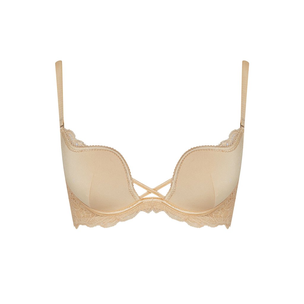 Dámská push-up podprsenka s dvojitými vycpávkami. Košíčky modelu jsou vyrobené z hladké látky a mají originální střih, který ideálně stahuje poprsí k výstřihu. Vnitřní strana košíčků je pokrytá bavlnou. Boky modelu jsou ušité z ažurové krajky. Ramínka není možné odepnout.Složení: 85 % polyamid, 15 % elastan.