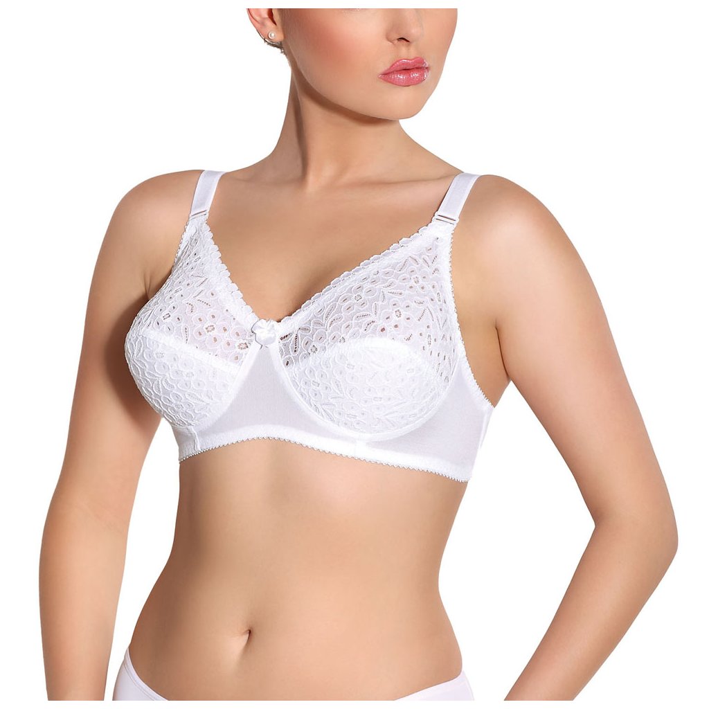 Pohodlná podprsenka Jarpol 409 je ideální pro opravdové pohodlí. Měkká podprsenka bez výztuže a kostic s širokými, přizpůsobitelnými ramínky. Speciální design podprsenky umožňuje, aby ňadra vypadala přímo skvěle. Celá je ušitá z jemné ažurové krajky, od středu do spodní části je všitá podšívka z příjemné bavlny. Model má zmenšovací efekt. Složení: 87 % polyamid, 13 % elastan.Doplňkové parametry