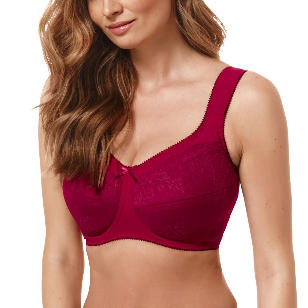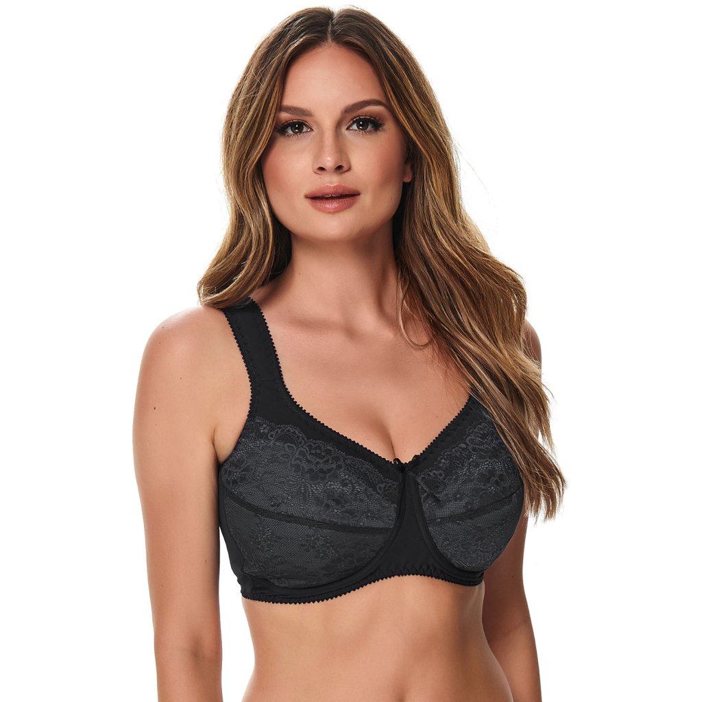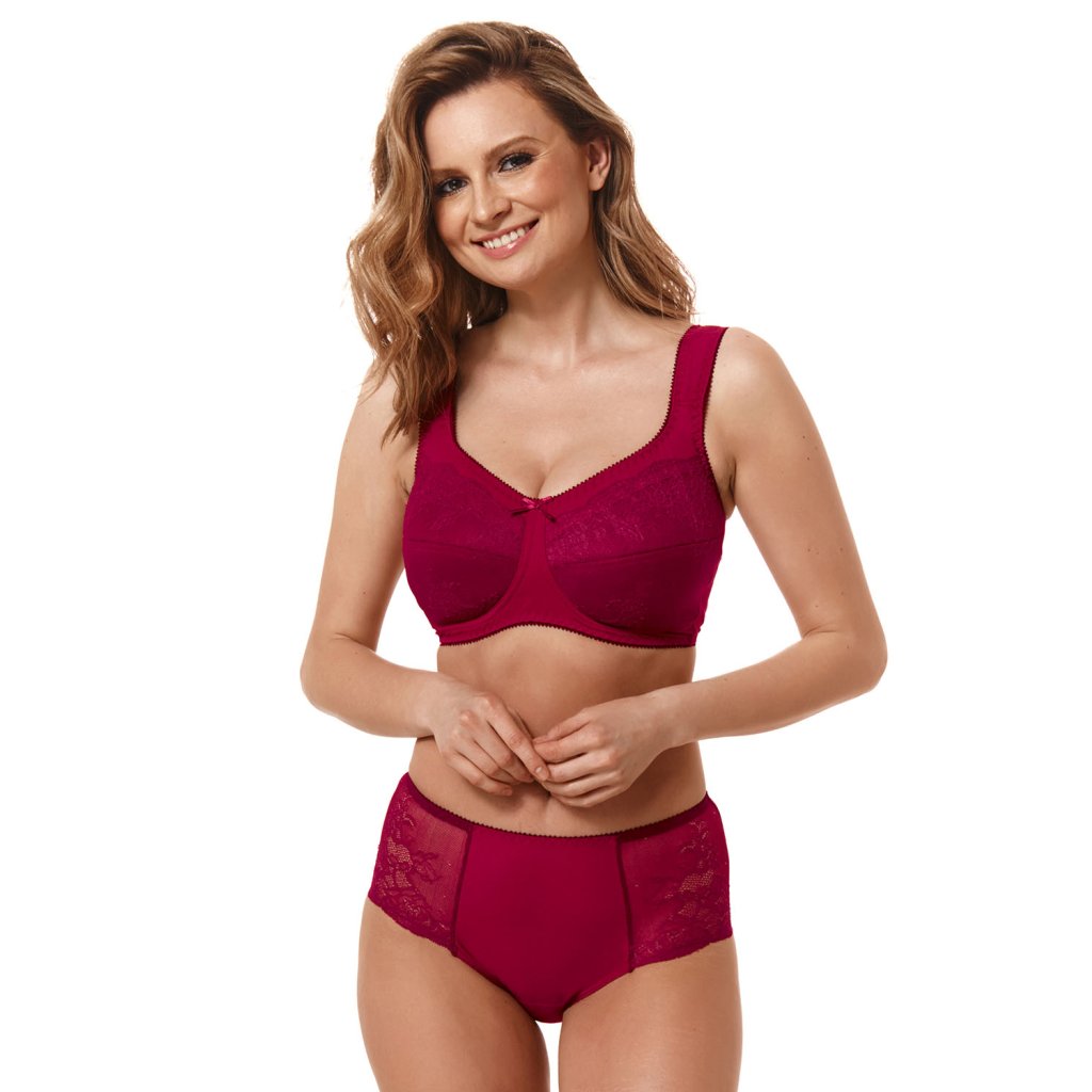 Podprsenka pro amazonky s vyztuženými košíčky- má kapsy na zubní náhrady na obou stranách- vyztužená podprsenka pokrytá jemnou květinovou výšivkou,- vnitřní části šálků potažené jemnou bavlnou.- široké boky zajišťují správnou podporu prsou- konstrukce podprsenky zajišťuje stabilitu a dokonalé tvarování poprsí.- jemná saténová mašle mezi košíčky- široké, neodnímatelné, nastavitelné popruhy zajišťují pohodlí po celý den.Složení: Materiál: 60% polyamid, 25% bavlna, 15% elastan.Doplňkové parametry