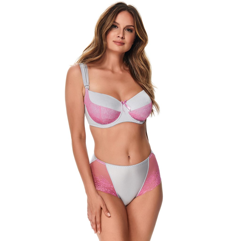 Elegantní kojící podprsenka v šedé barvě. - vyrobeno z jednotného mikrovlákna, zdobené růžovou krajkou s květinovým vzorem - měkké košíčky uvnitř jsou podšité jemnou bavlnou - střed košíčku je bez švů, které mohou v tomto období dráždit jemné tělo - široká ramínka zabraňují zarývání do pokožky a poskytují pohodlí po celý den - nastavitelná, neodepínatelná ramínka - malá saténová mašlička mezi košíčky - má kostice - zapínání s háčky, 3-řadé - spojuje krásu a praktičnost Složení: 60% bavlna, 30% polyamid, 10% elastan.
